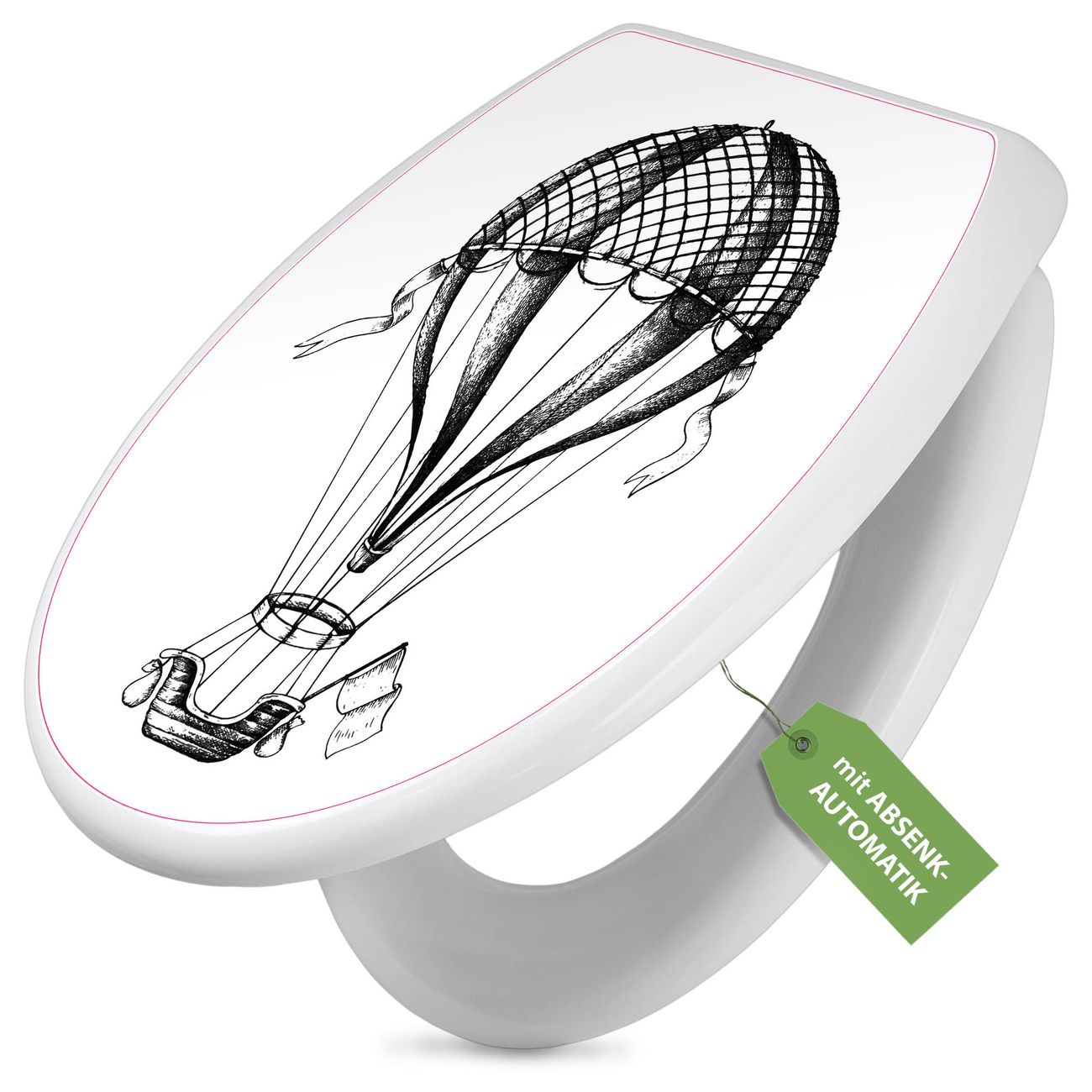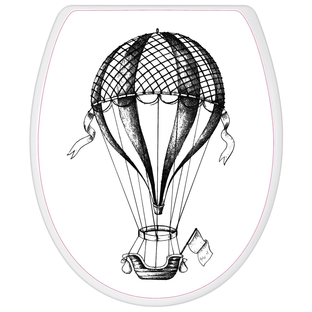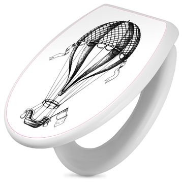Toilettendeckel weiß mit Absenkautomatik Motiv Retro Heißluftballon