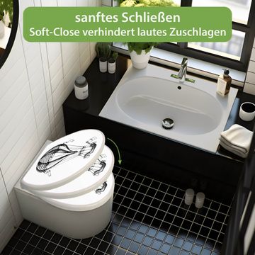 FUNKTION: Mit dem banjado Toilettendeckel mit Absenkautomatik verbinden Sie Design mit Funktionalität. Sie erhalten den WC Sitz in bewährt guter Qualität mit Edelstahl Scharnieren und Montagematerial. DESIGN: Der Klodeckel hat eine ansprechende Optik, eine besondere Form und ist sehr stabil. Das Motiv besteht aus einer farbbrillianten Motivfolie, die durch ein Schutzlaminat zusätzlich vor Kratzern schützt. DETAILS: Der Toilettensitz besteht aus Duroplast, die Scharniere sind aus hochwertigem Edelstahl, Materialien die Ihnen eine leichte und hygienische Reinigung ermöglichen. Die Gesamtgröße beträgt 37,3cm x 45cm x 5cm, die Grundfarbe ist weiß. NUTZEN: Mit Hilfe der detaillierten Aufbauanleitung ermöglichen wir eine schnelle und unkomplizierte Montage. Die banjado Klobrille ist universell geeignet für alle gängigen WC Schüsseln. Der Lochabstand zur Befestigung kann variable eingestellt werden. BANJADO: Ihr WC-Deckel wird in Sachsen in einer kleinen Manufaktur von Hand veredelt. Die Motivfolie ist lösungsmittelfrei und schutzlaminiert, für einen langen Halt. Wir wünschen viel Freude bei der Auswahl eines schönen Motivs.