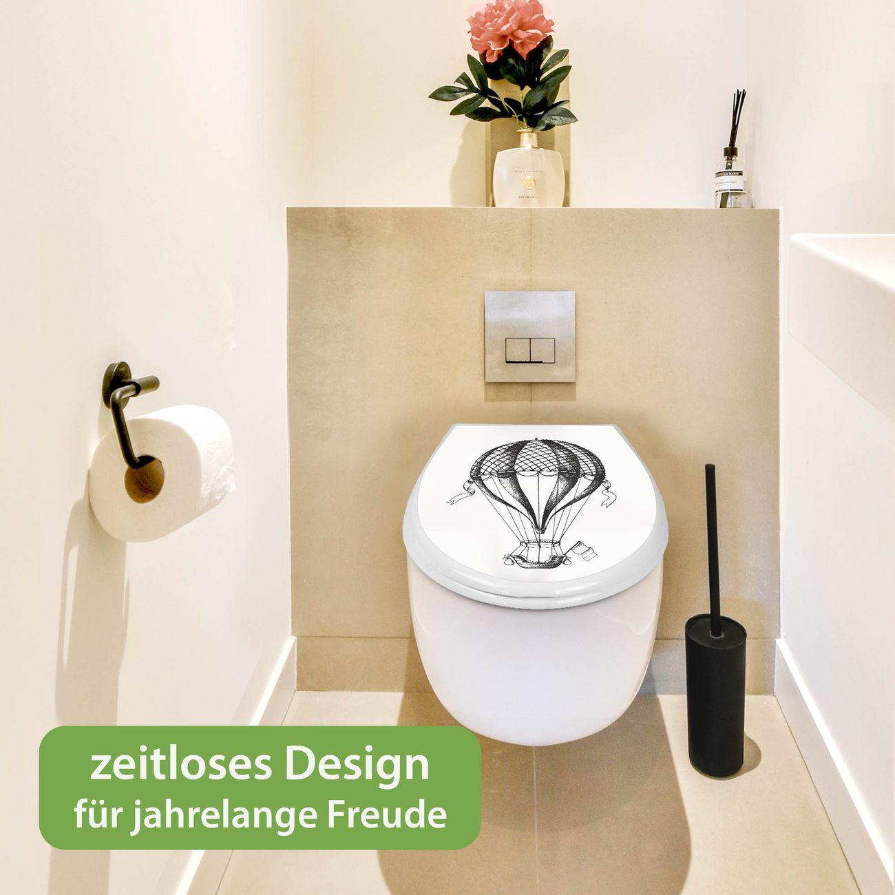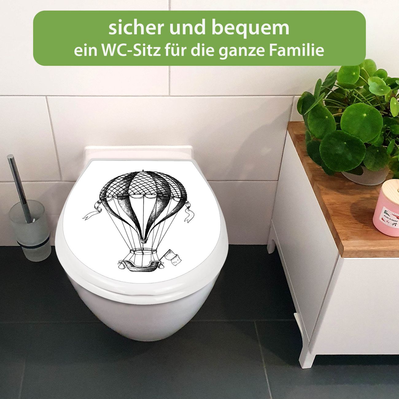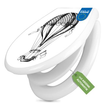 Toilettendeckel weiß mit Absenkautomatik Motiv Retro Heißluftballon