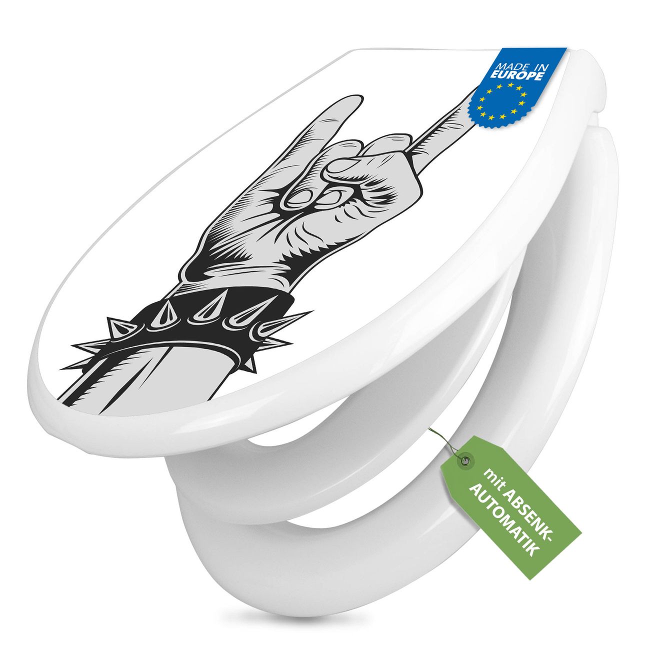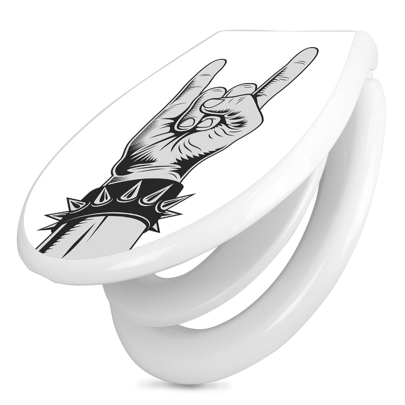 Toilettendeckel weiß mit Absenkautomatik Motiv Rockgruß