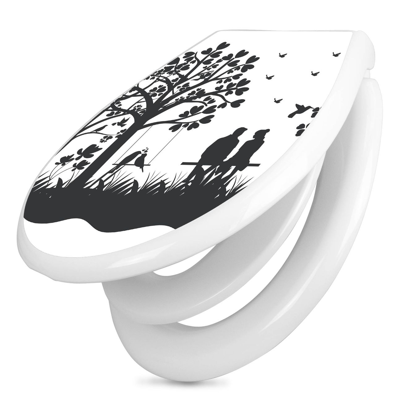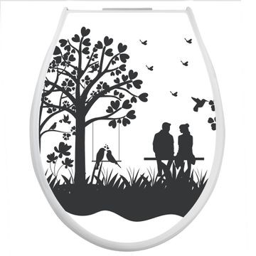 Toilettendeckel weiß mit Absenkautomatik Motiv Romantische Silhouette im Park
