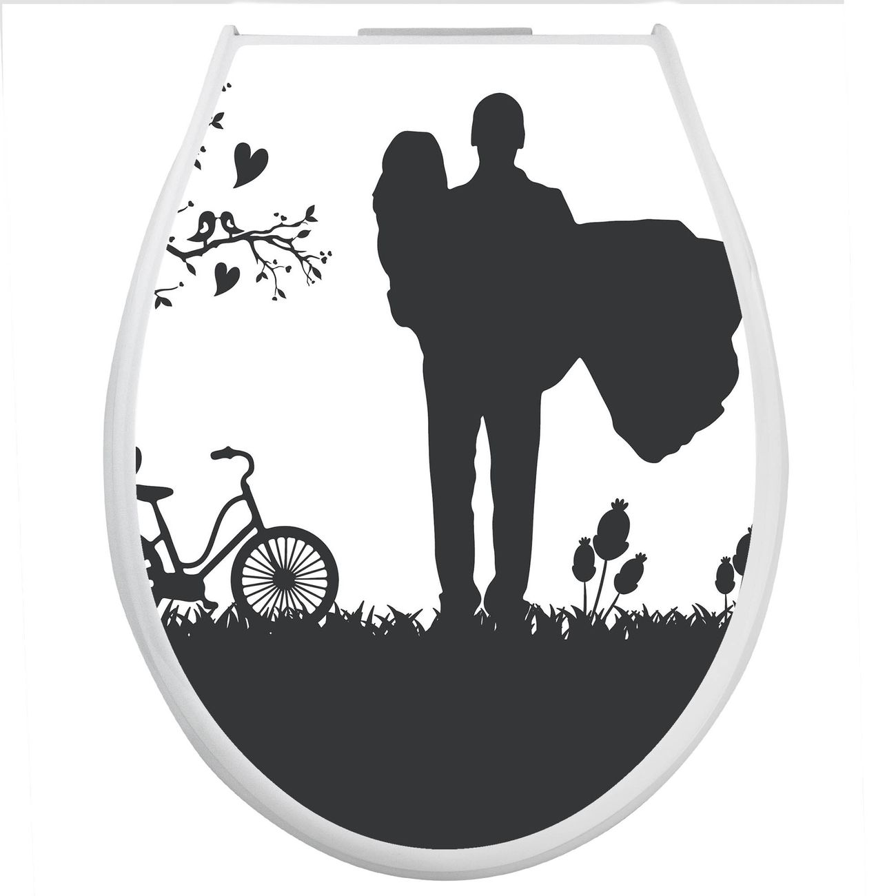 Toilettendeckel weiß mit Absenkautomatik Motiv Romantische Silhouette