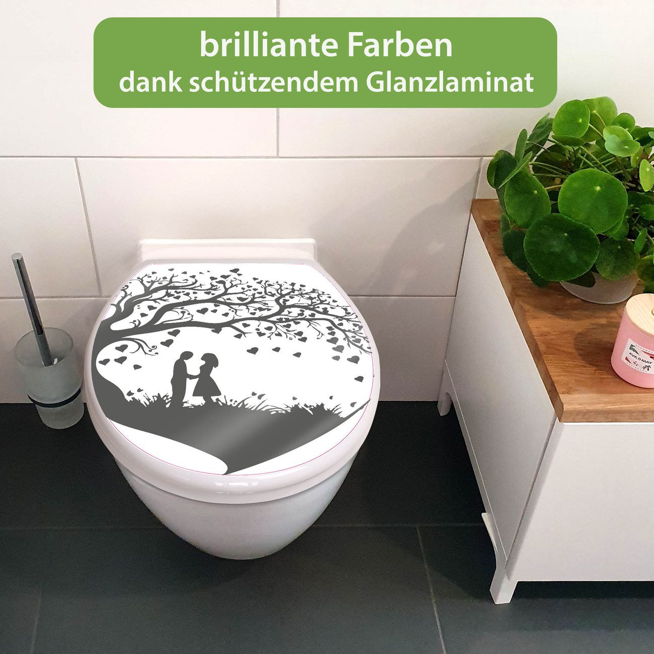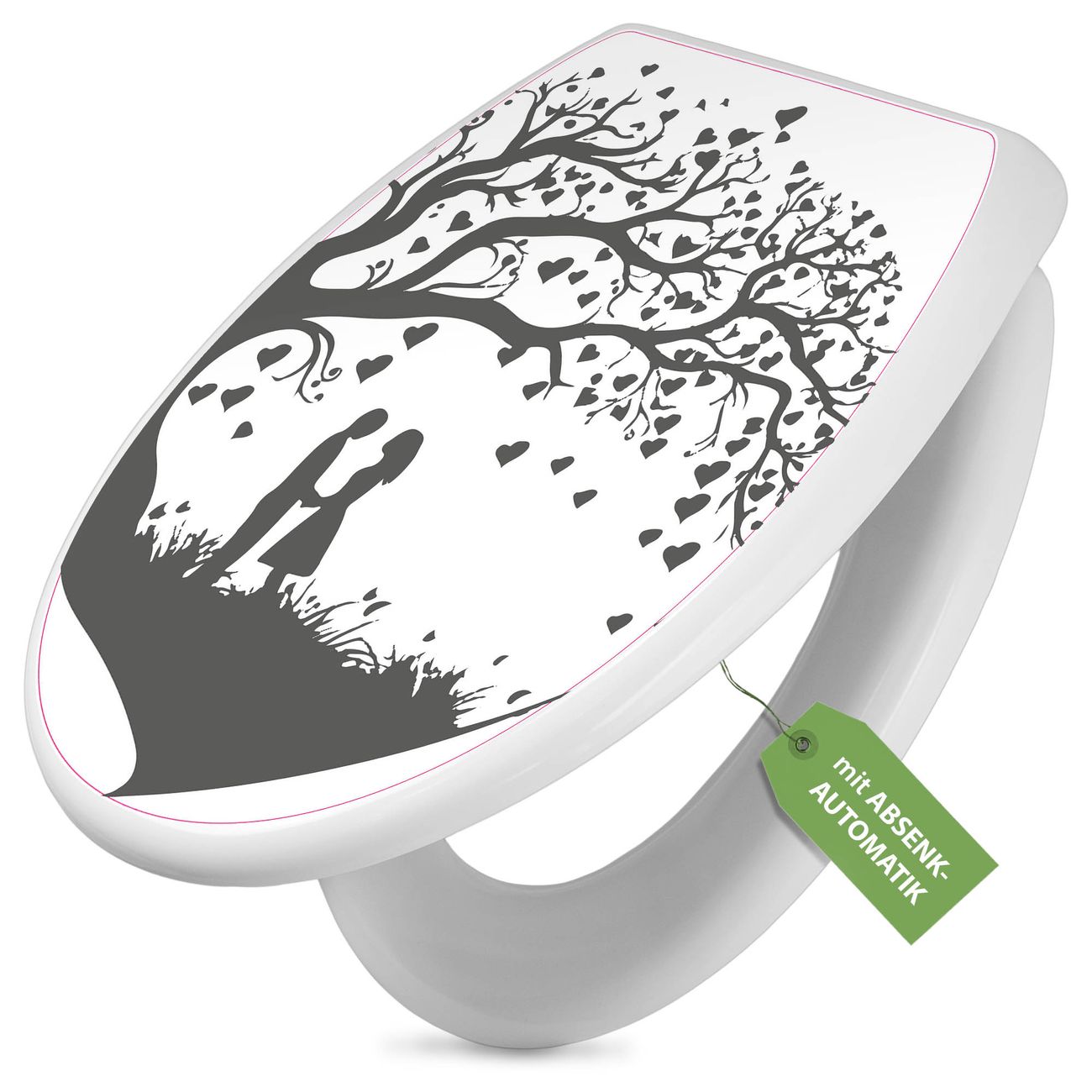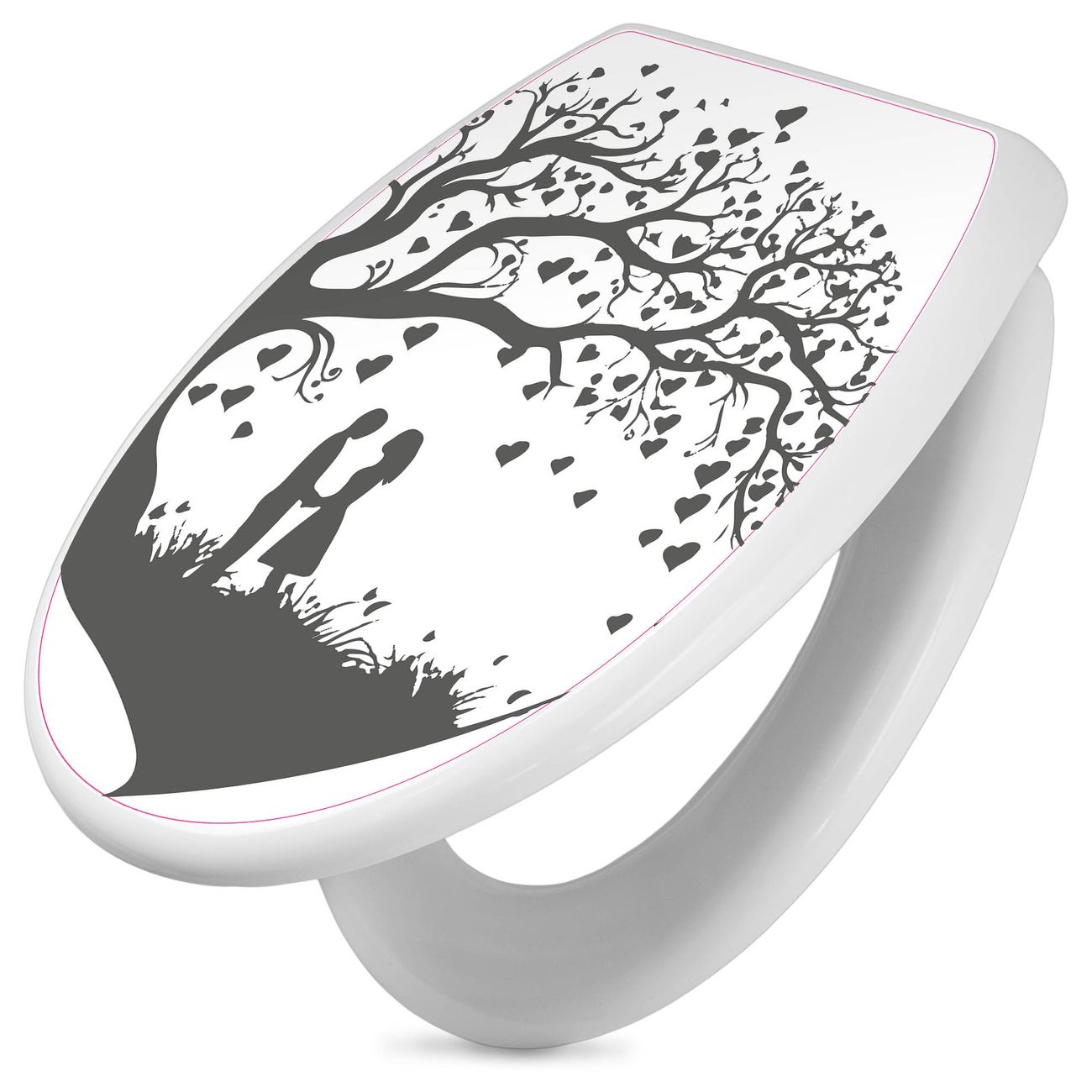 Toilettendeckel weiß mit Absenkautomatik Motiv Romantisches Baumherz Silhouette 2