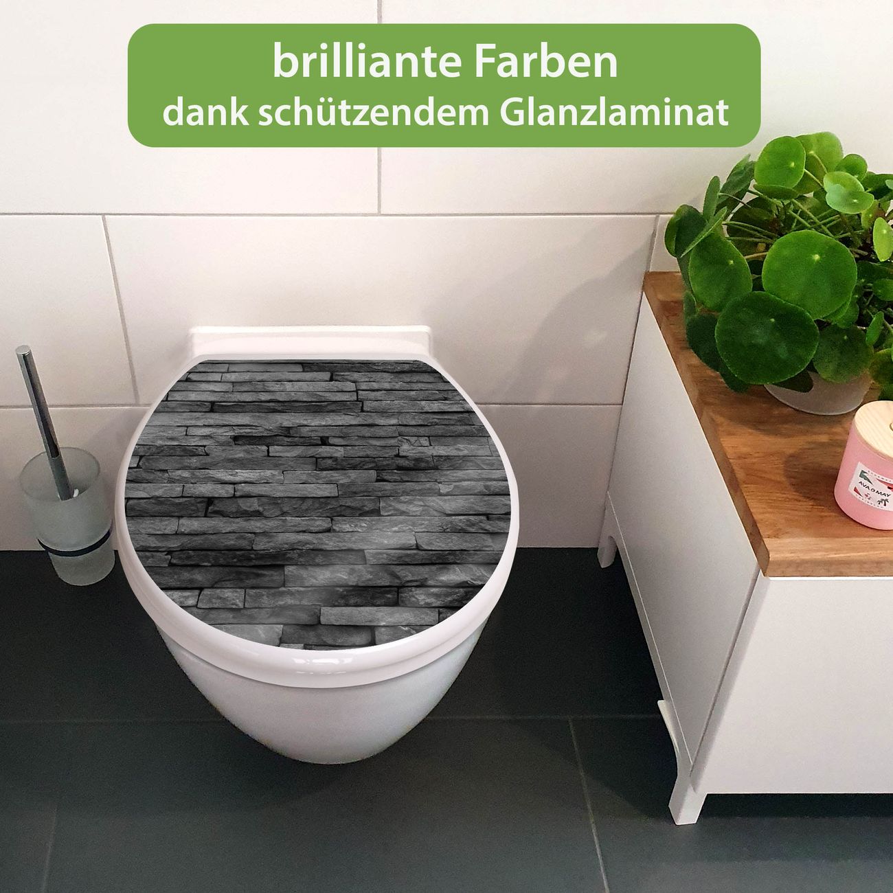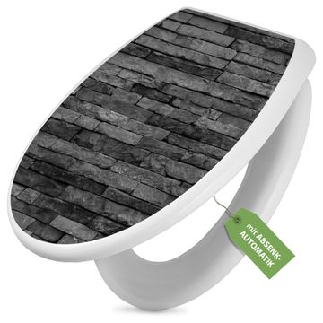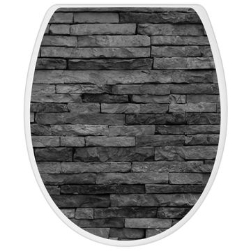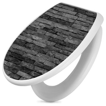 Toilettendeckel weiß mit Absenkautomatik Motiv Rustikale Steinwand
