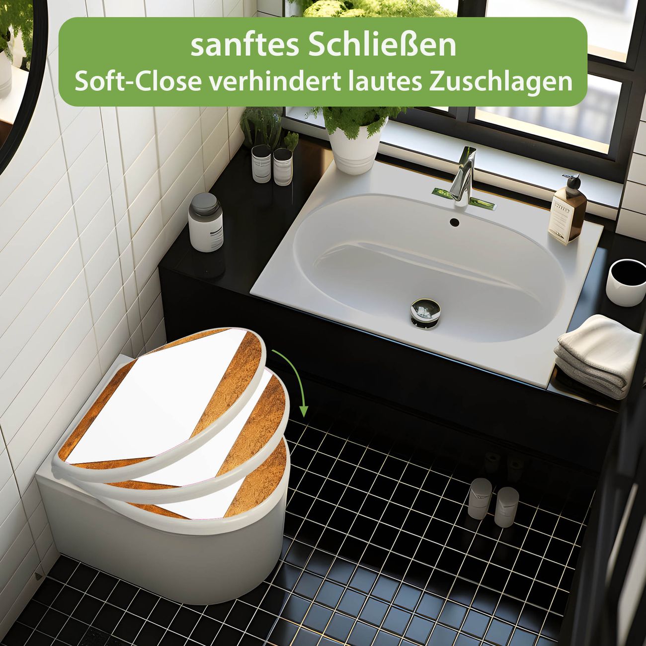 - Material: WC-Sitz und Deckel aus robustem Duroplast