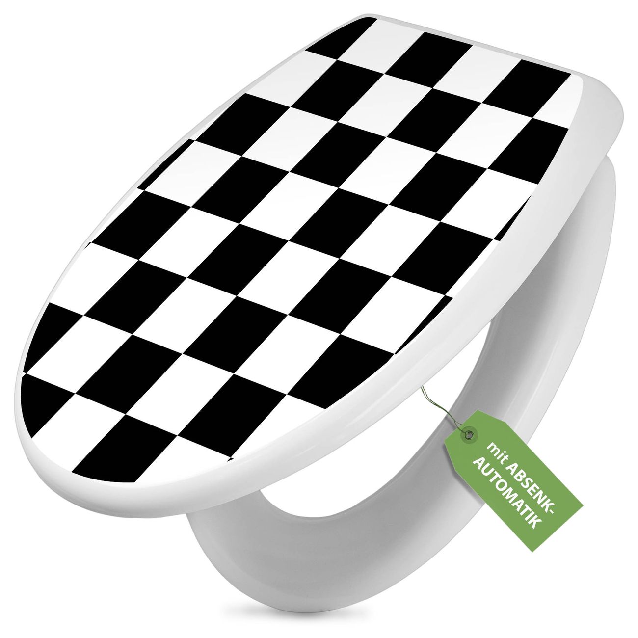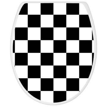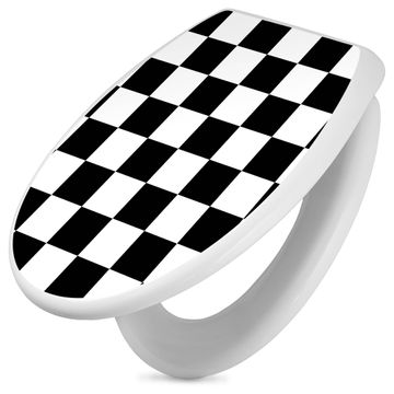 Toilettendeckel weiß mit Absenkautomatik Motiv Schachbrettmuster