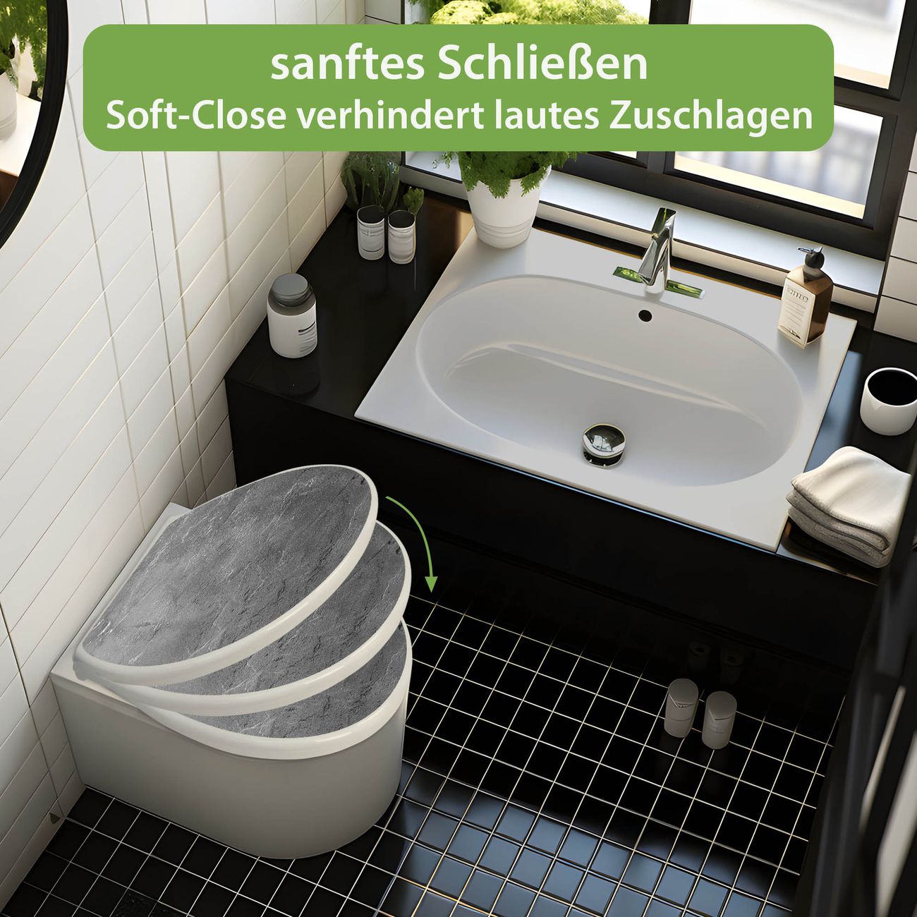 - Material: WC-Sitz und Deckel aus robustem Duroplast