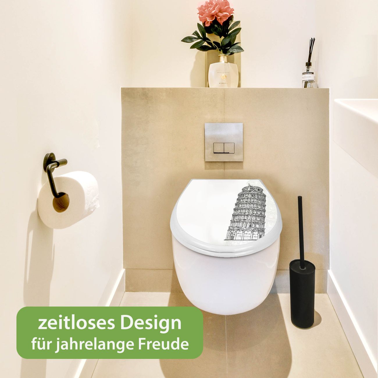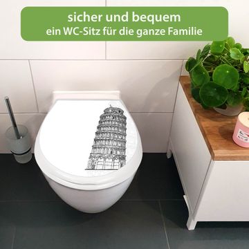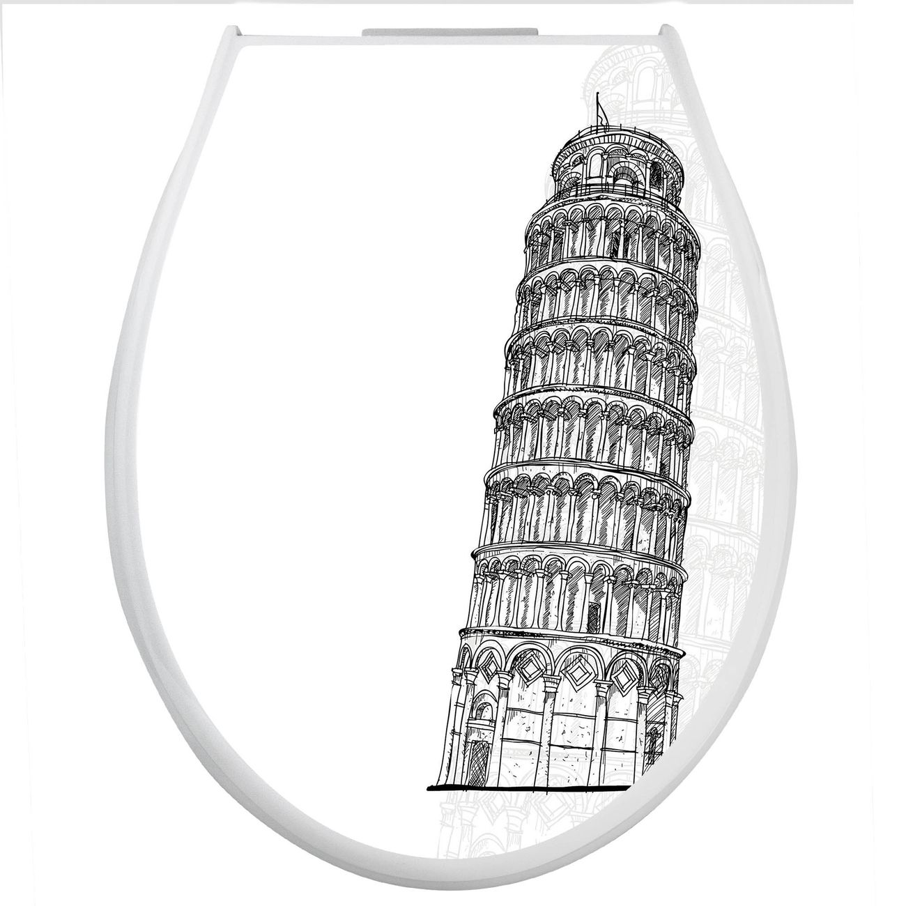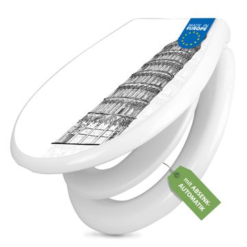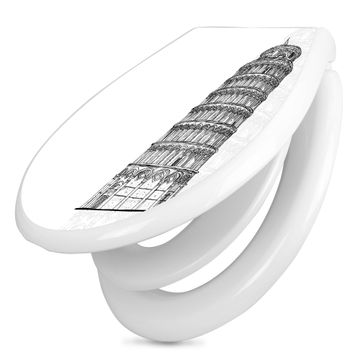 Toilettendeckel weiß mit Absenkautomatik Motiv Schiefer Turm von Pisa Skizze