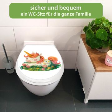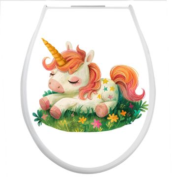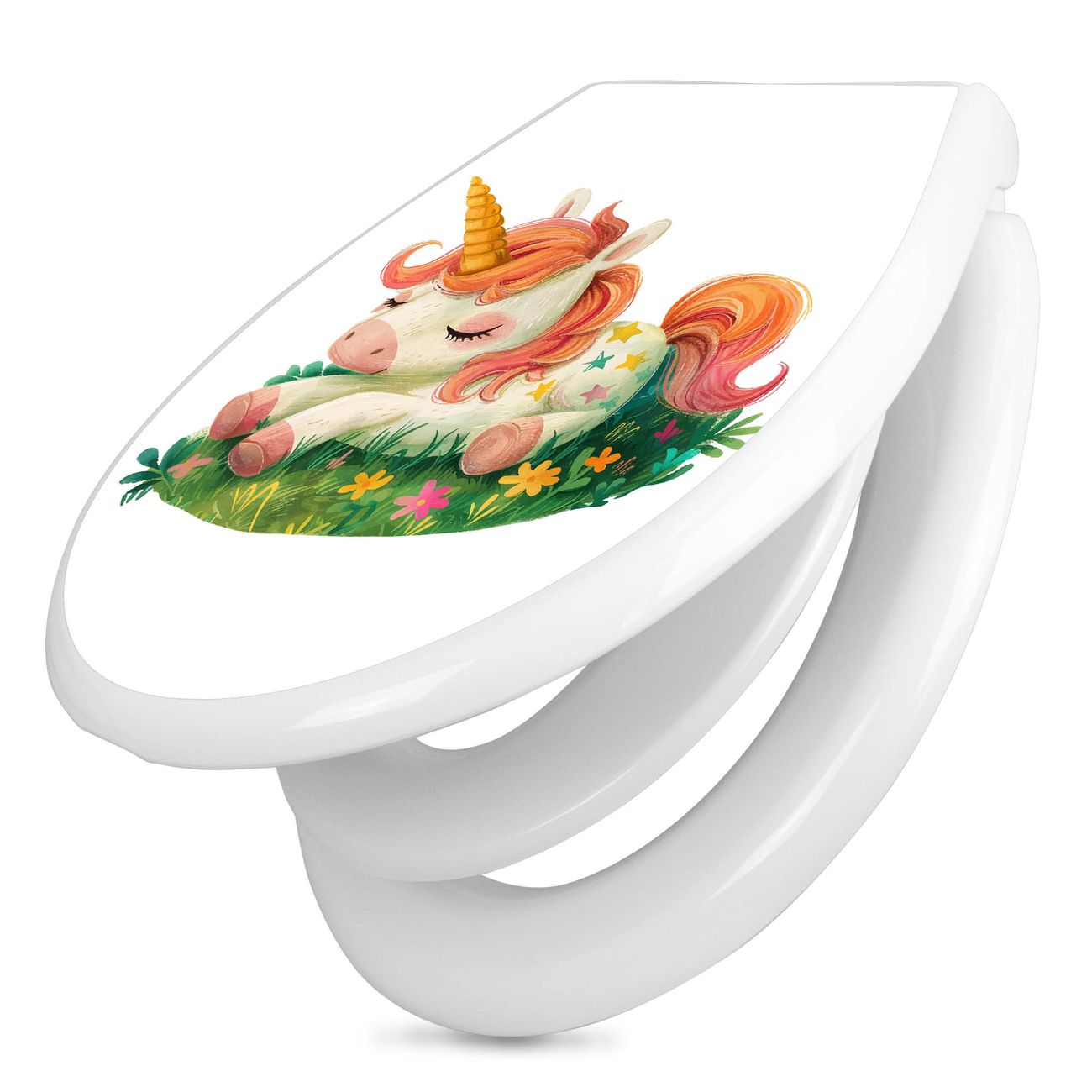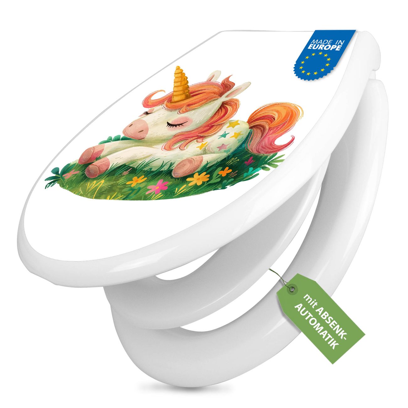 Toilettendeckel weiß mit Absenkautomatik Motiv Schlafendes Einhorn