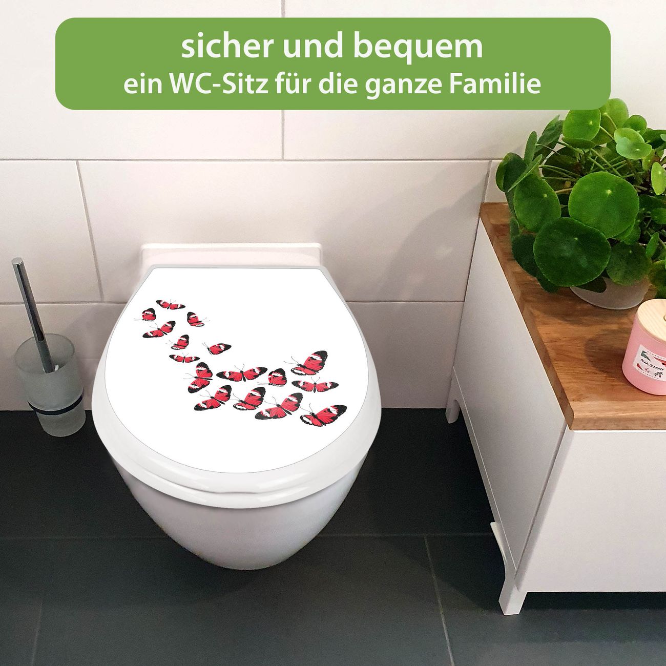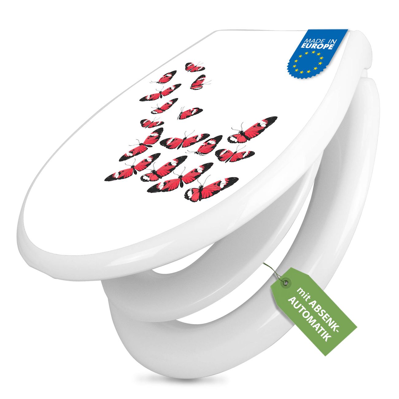 Toilettendeckel weiß mit Absenkautomatik Motiv Schmetterlingsflug