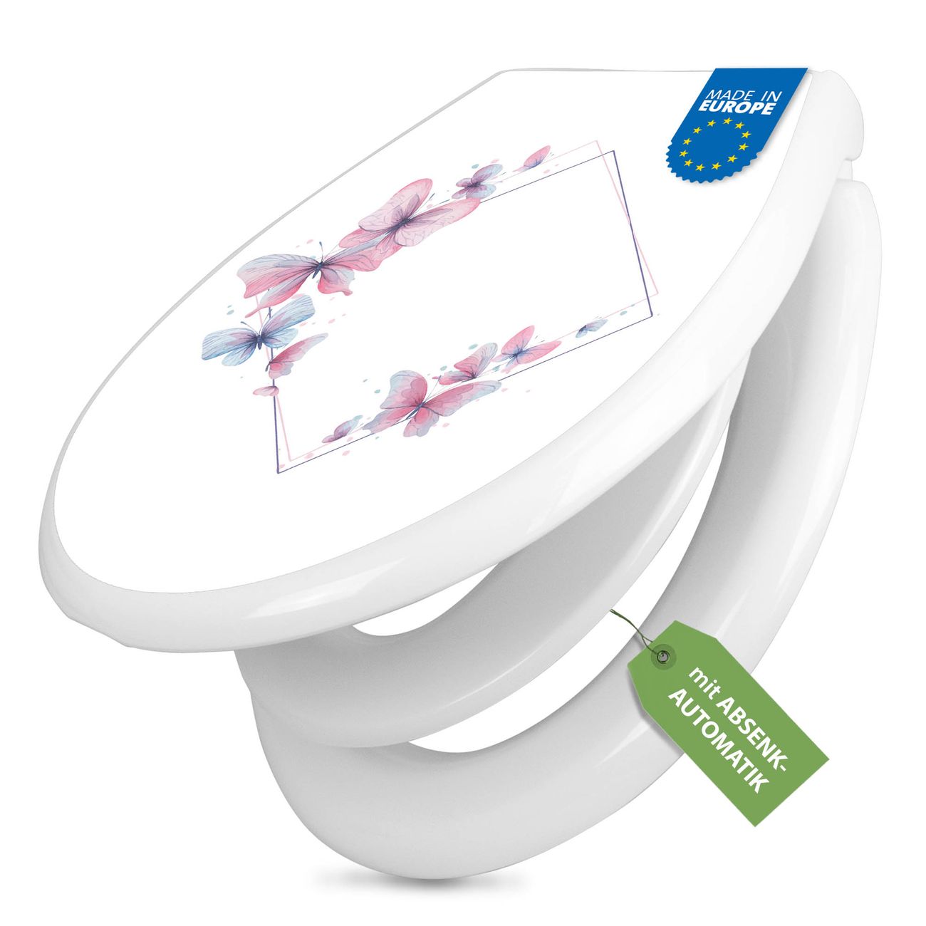 Toilettendeckel weiß mit Absenkautomatik Motiv Schmetterlingsgarten 2