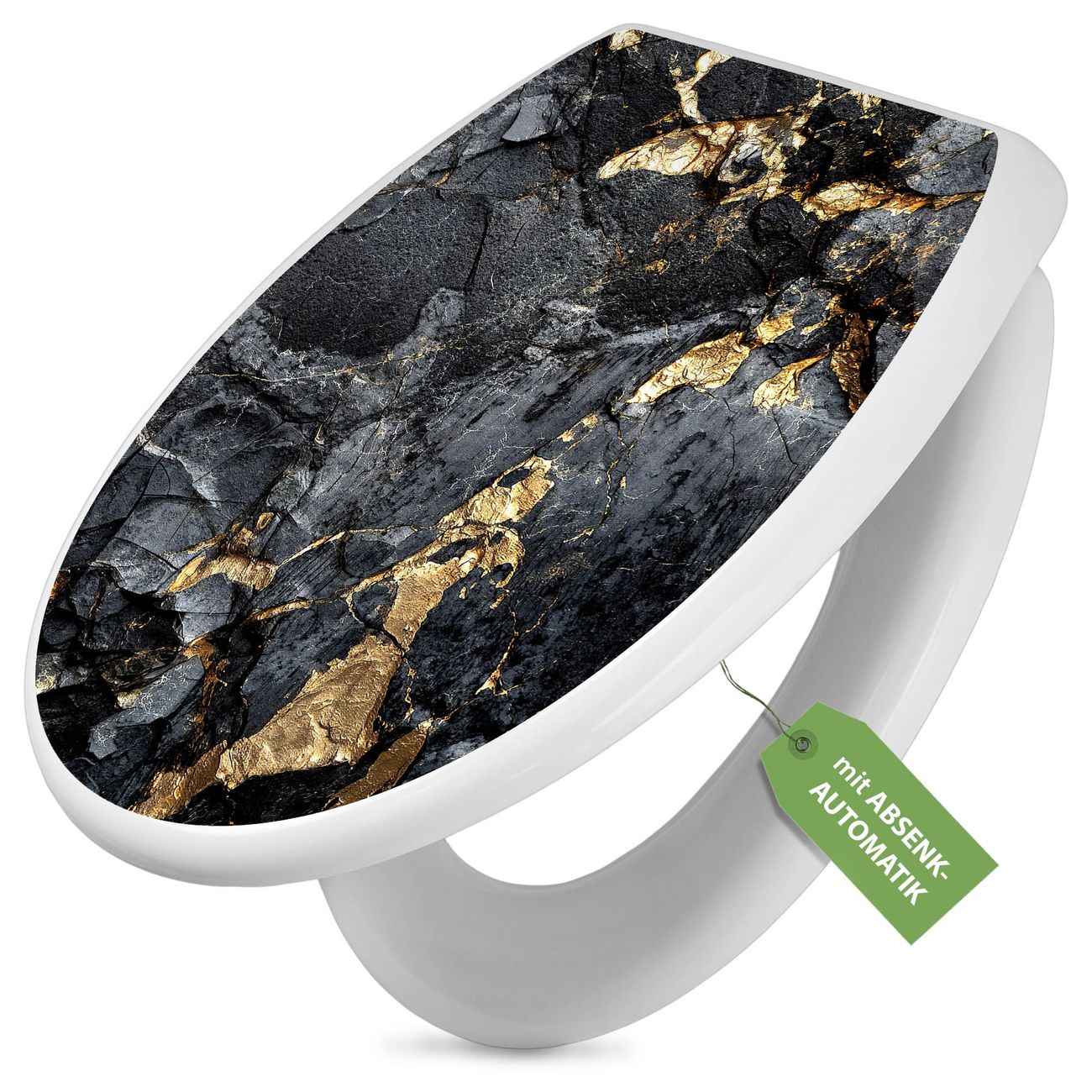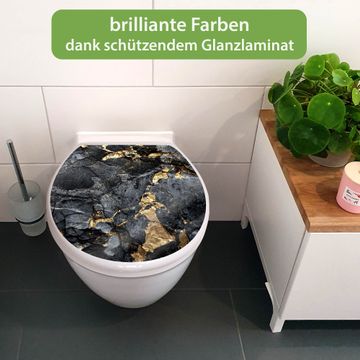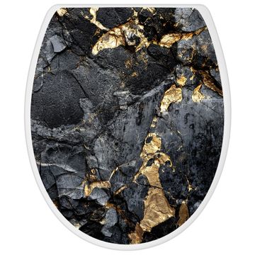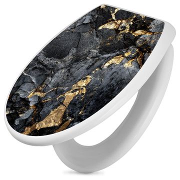 Toilettendeckel weiß mit Absenkautomatik Motiv Schwarzer Marmor mit Gold 1