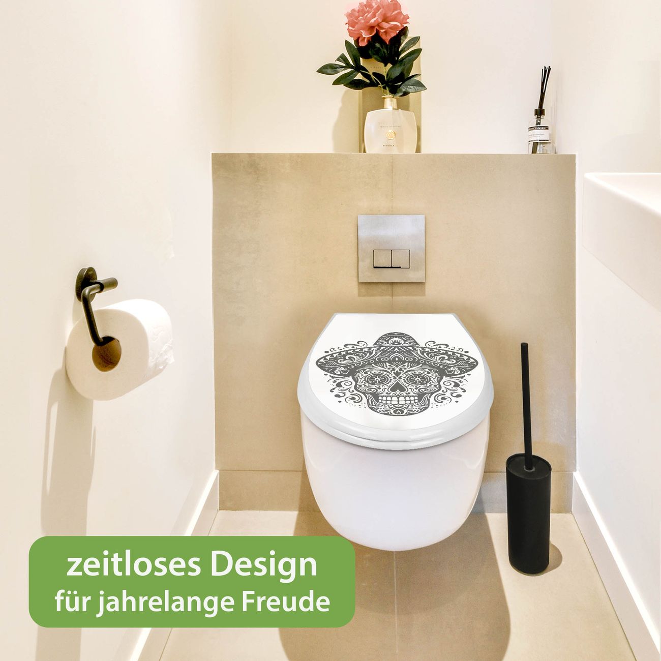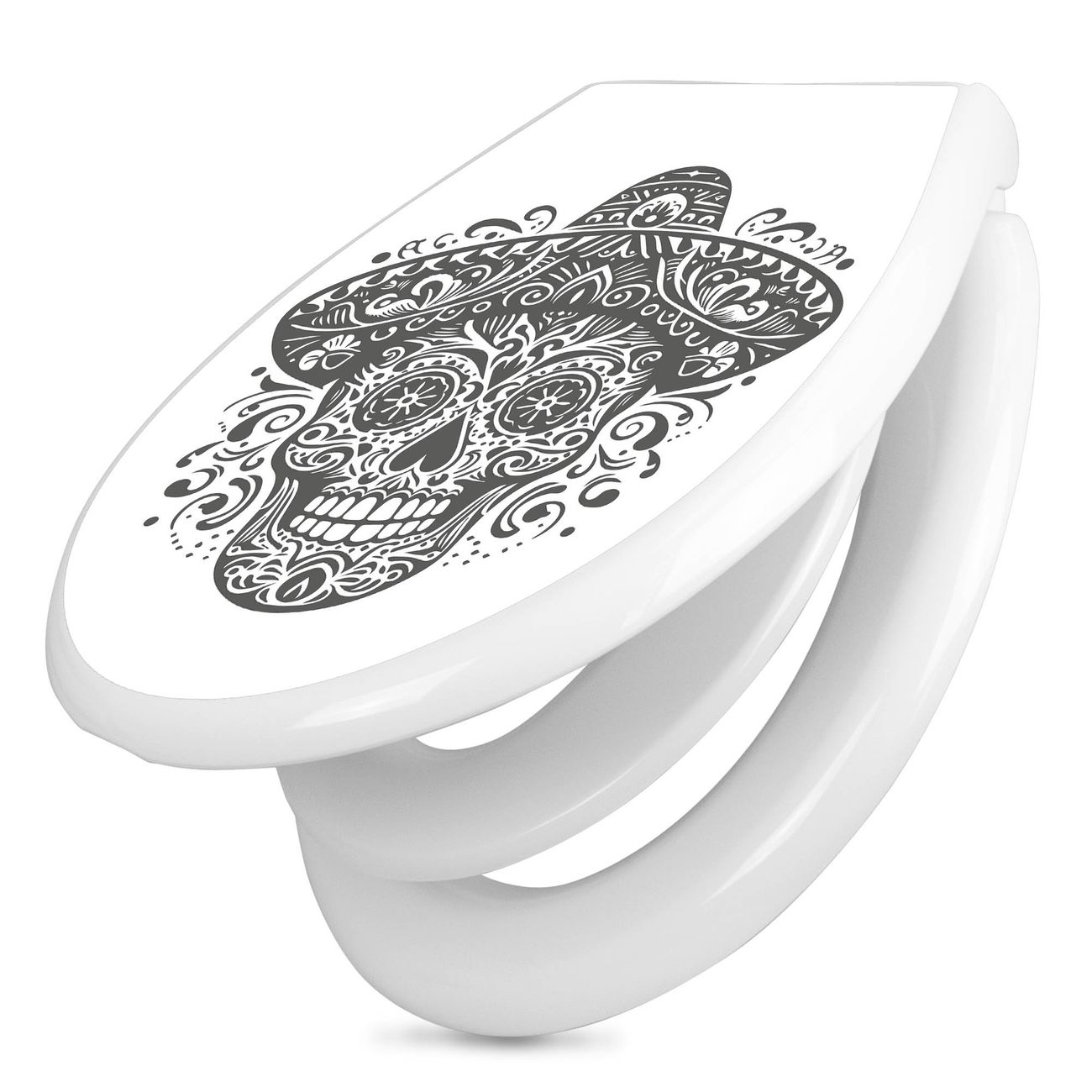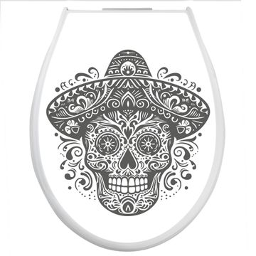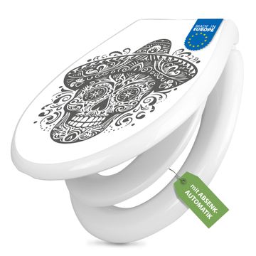 Toilettendeckel weiß mit Absenkautomatik Motiv Sombrero Totenkopf