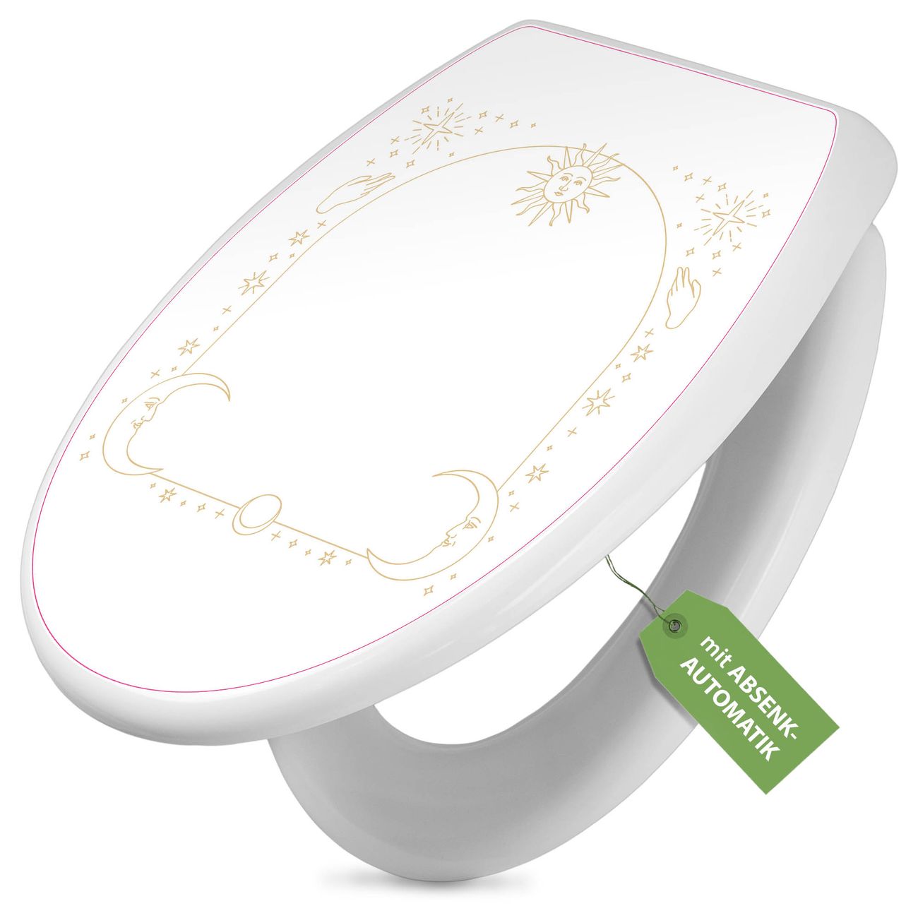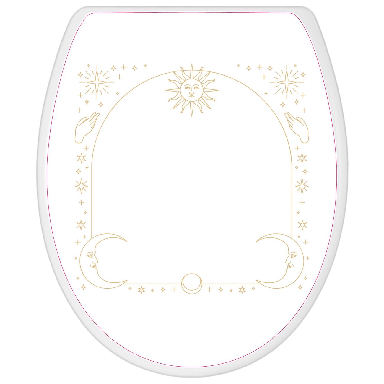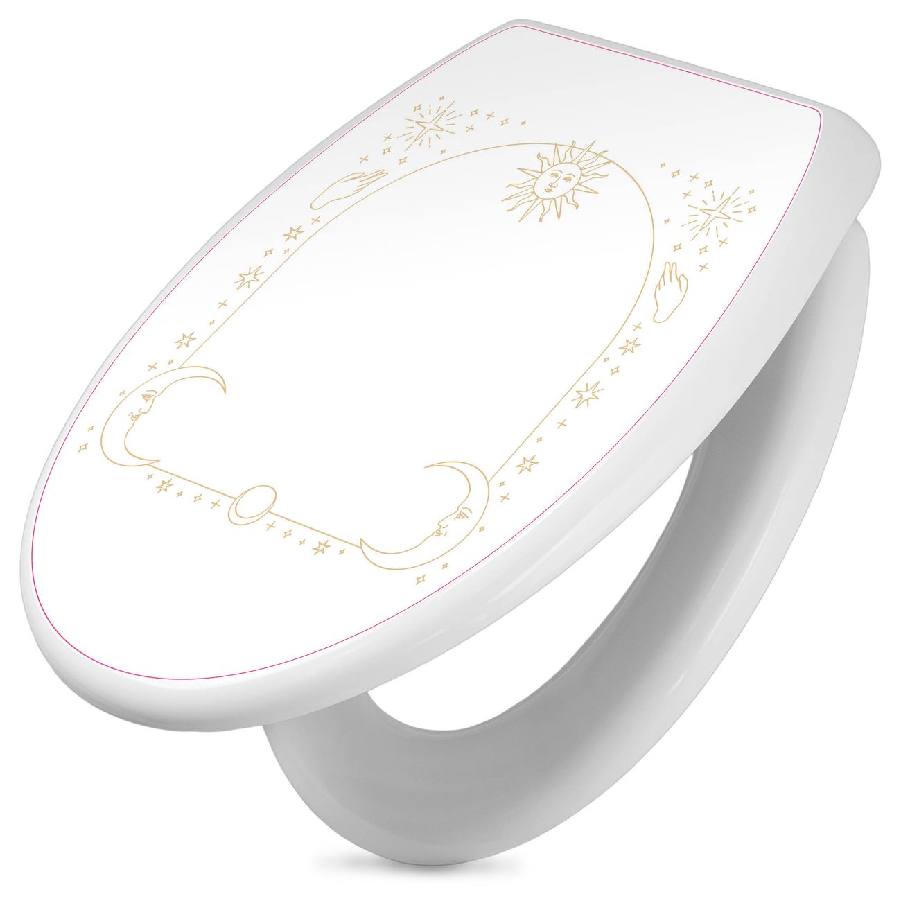Toilettendeckel weiß mit Absenkautomatik Motiv Sonne und Mond Symbole