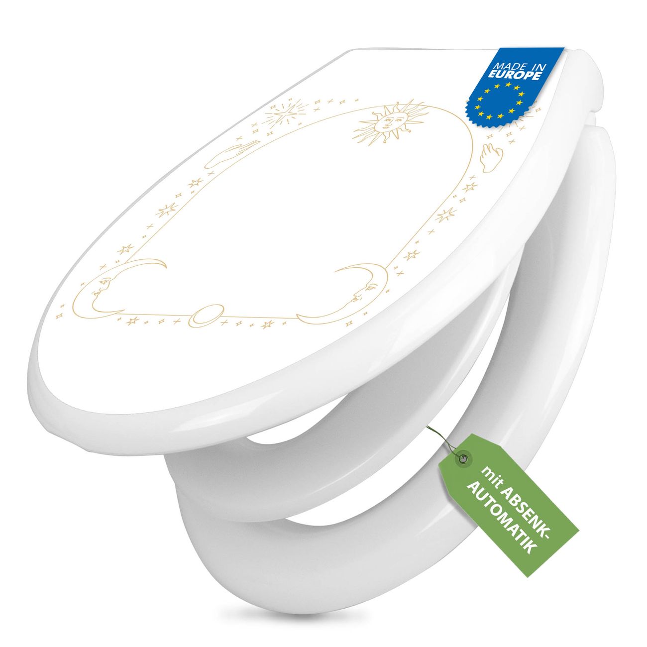 Toilettendeckel weiß mit Absenkautomatik Motiv Sonne und Mond Symbole
