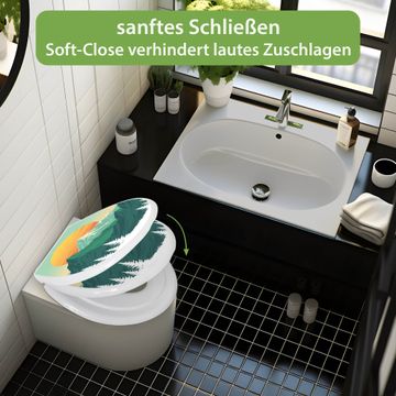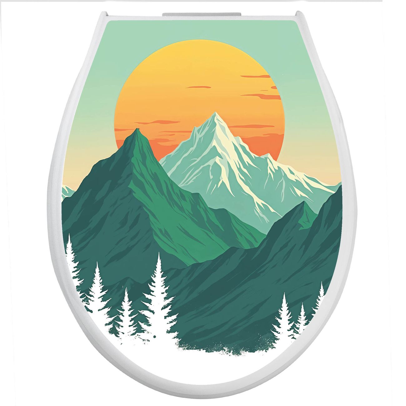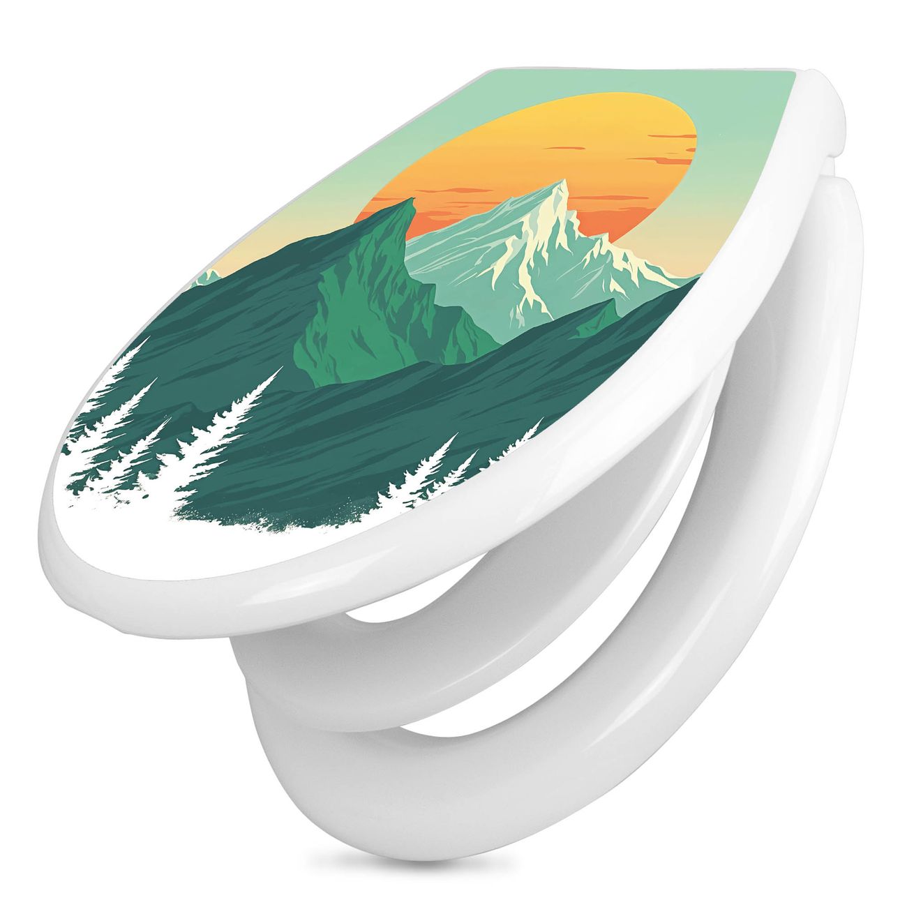 Toilettendeckel weiß mit Absenkautomatik Motiv Sonnenaufgang über den Bergen