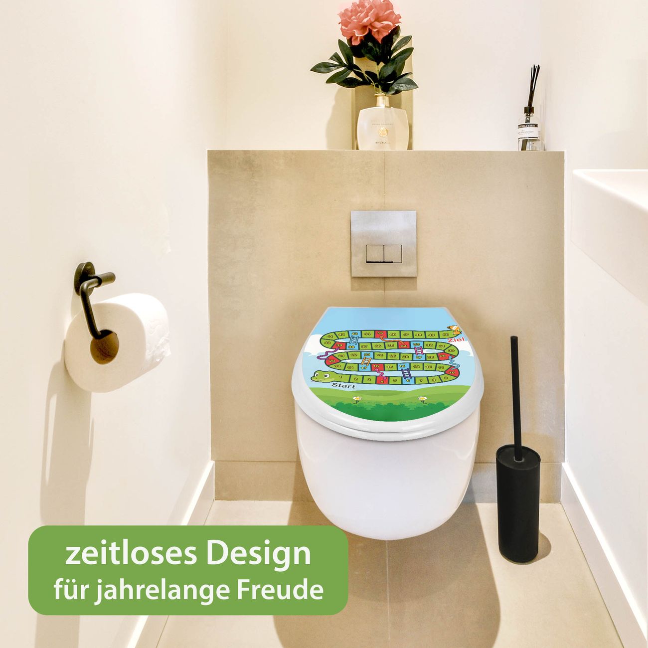 Toilettendeckel weiß mit Absenkautomatik Motiv Spielbrett 3