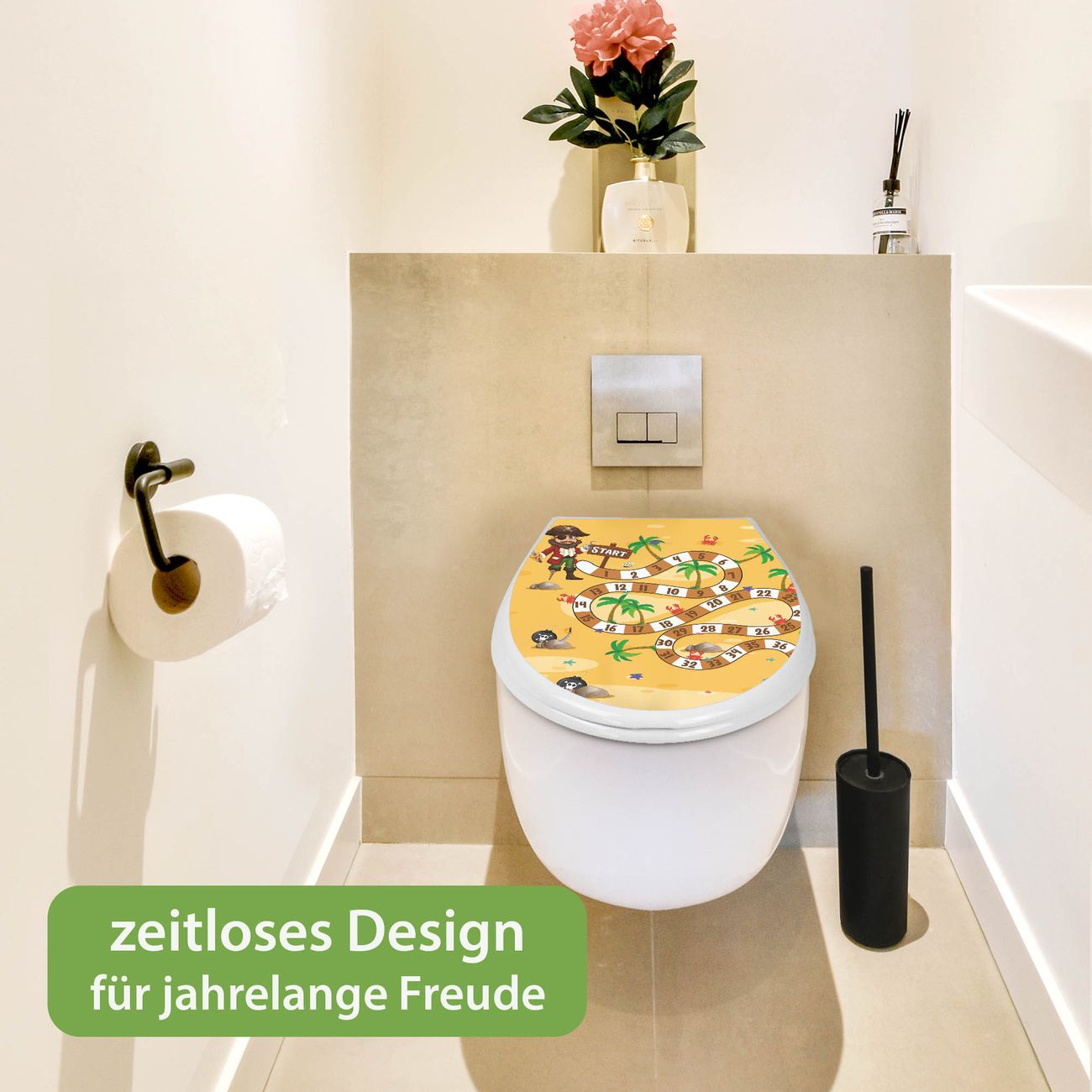 Toilettendeckel weiß mit Absenkautomatik Motiv Spielbrett 4