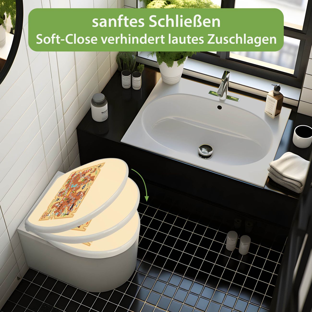 Toilettendeckel weiß mit Absenkautomatik Motiv Spielbrett 6