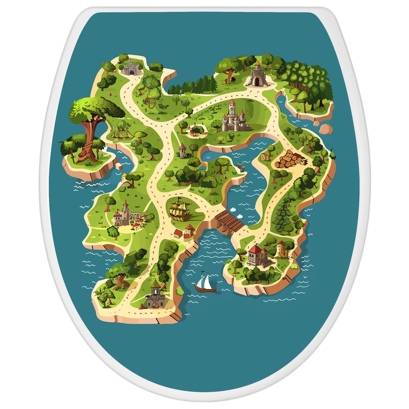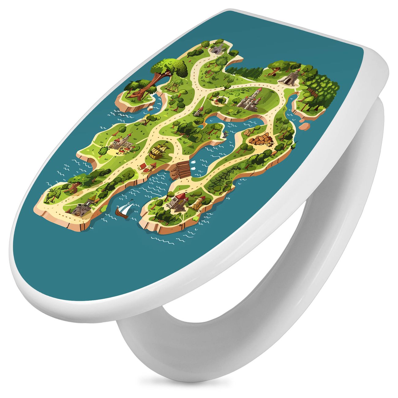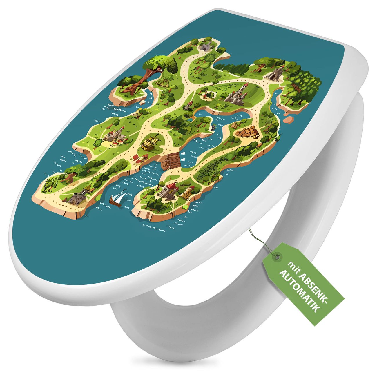 Toilettendeckel weiß mit Absenkautomatik Motiv Spielinsel