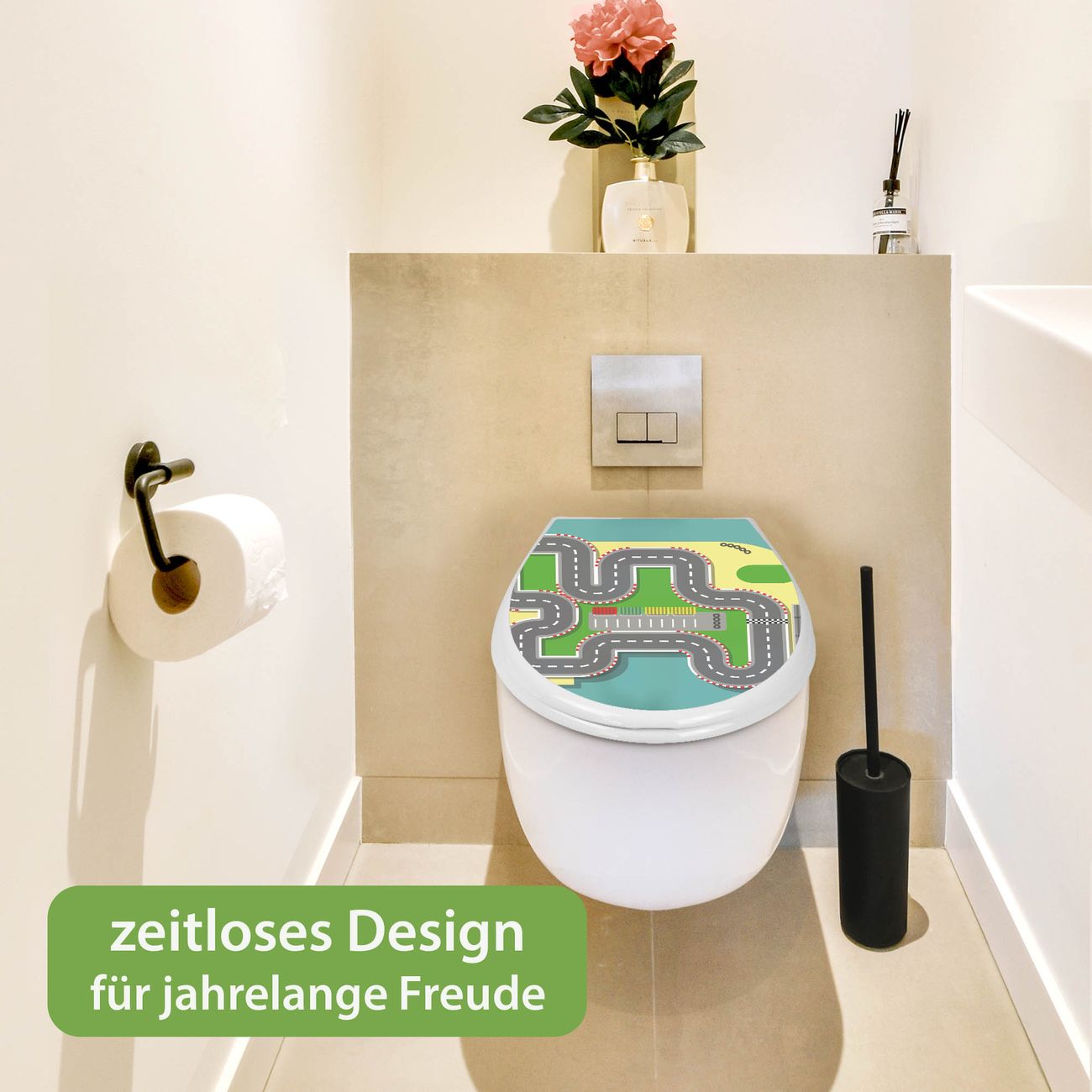 Toilettendeckel weiß mit Absenkautomatik Motiv Spielstraße 2