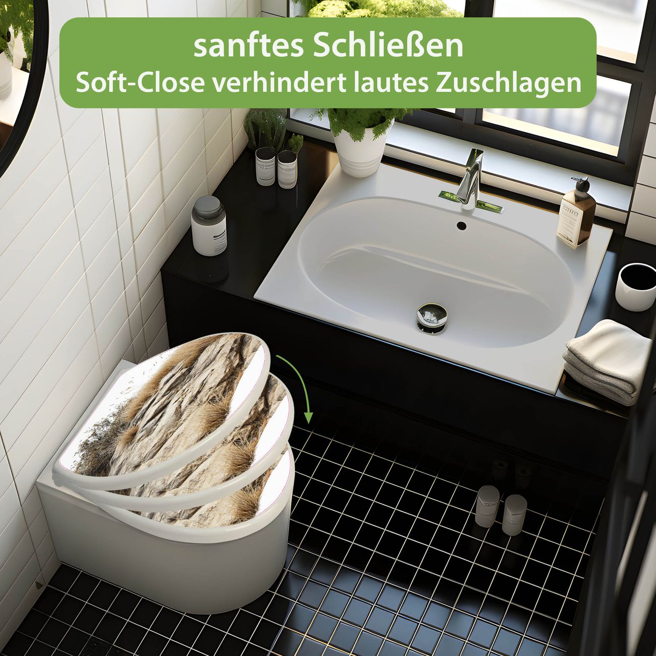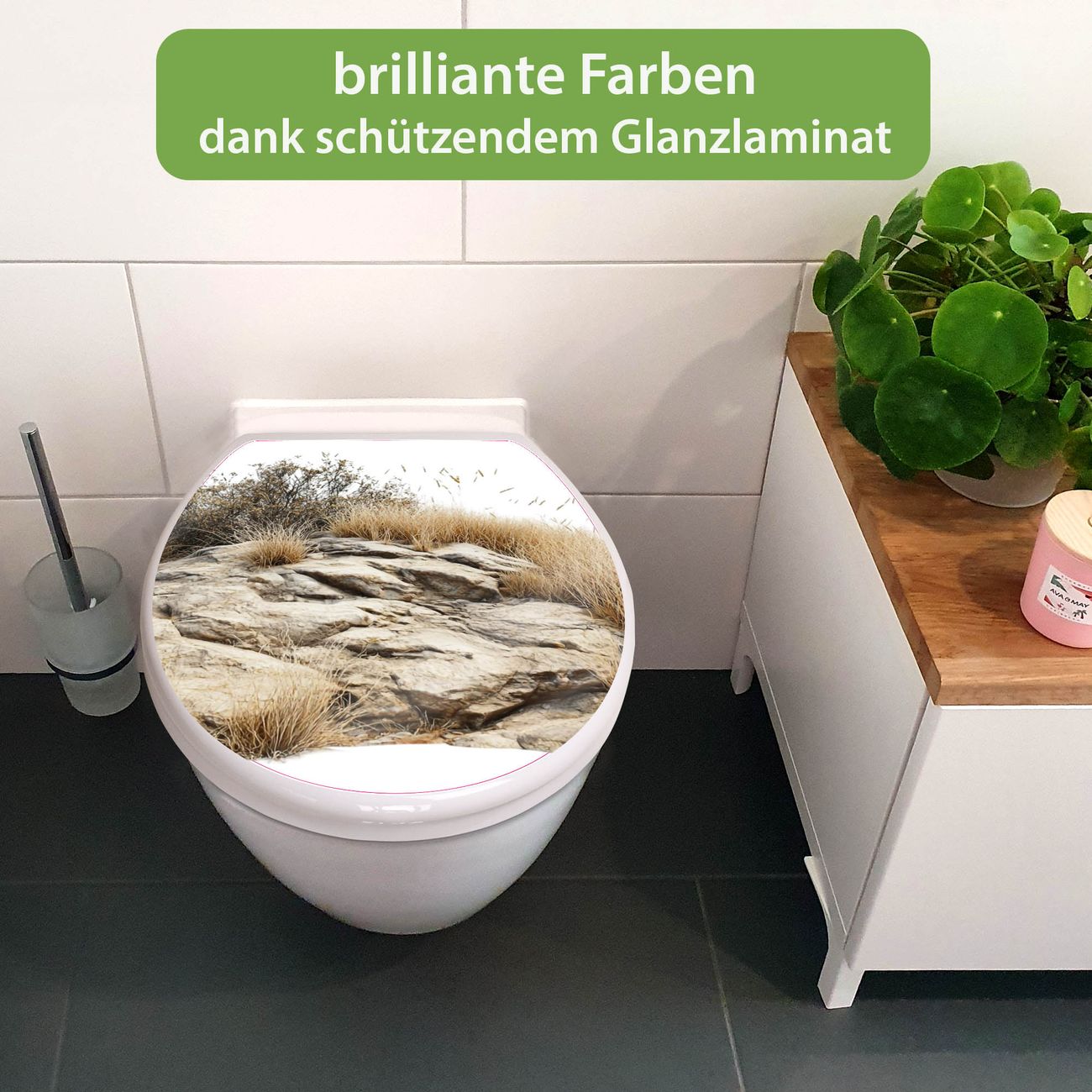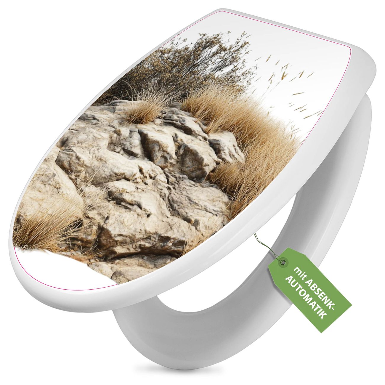 Toilettendeckel weiß mit Absenkautomatik Motiv Steinige Landschaft