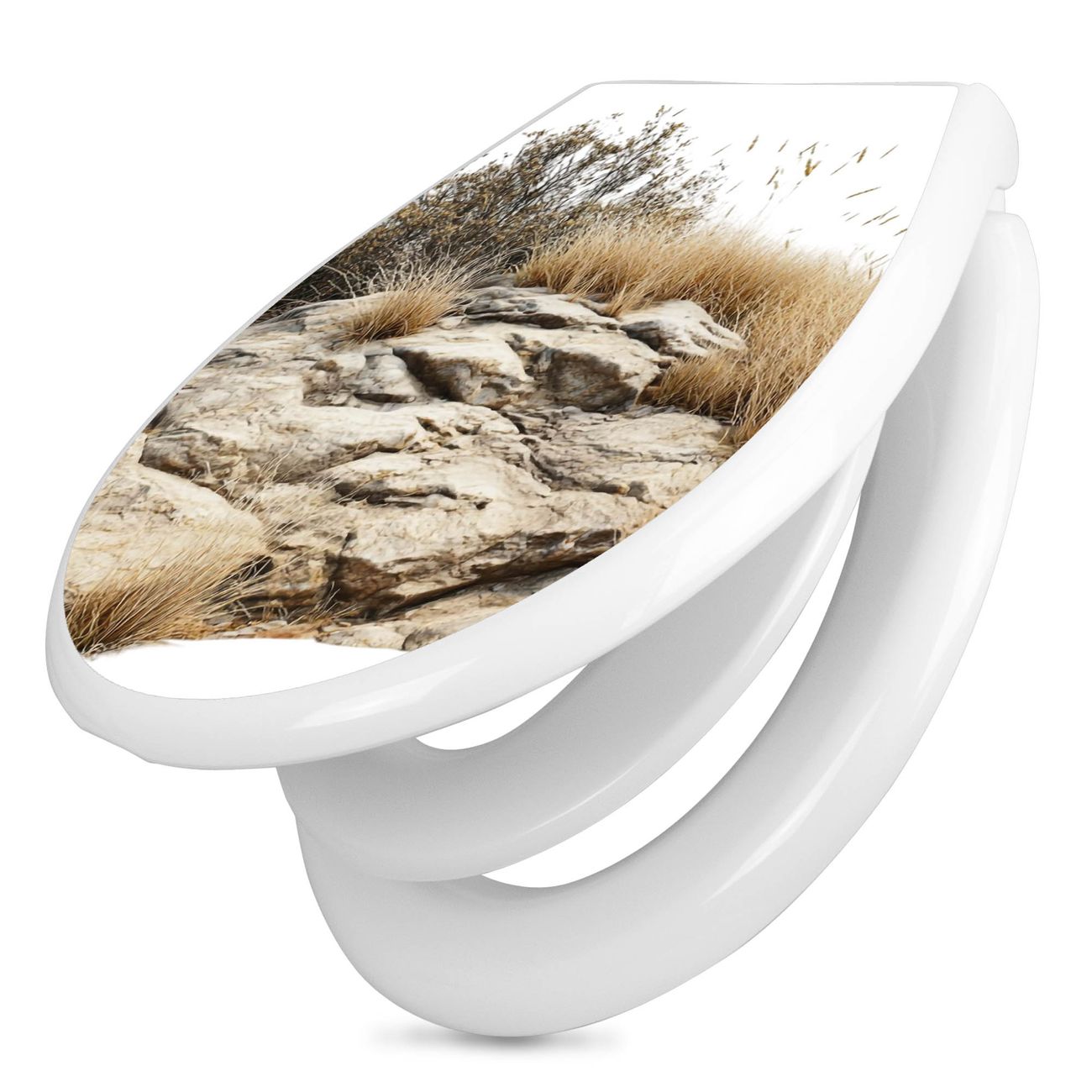 Toilettendeckel weiß mit Absenkautomatik Motiv Steinige Landschaft