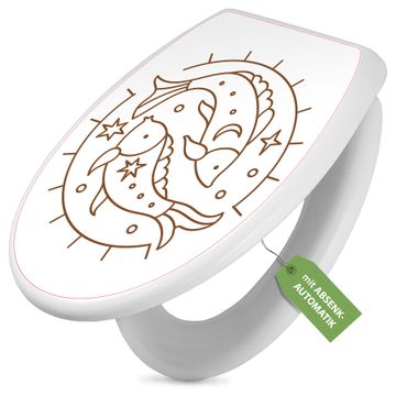 Toilettendeckel weiß mit Absenkautomatik Motiv Sternzeichen Fische