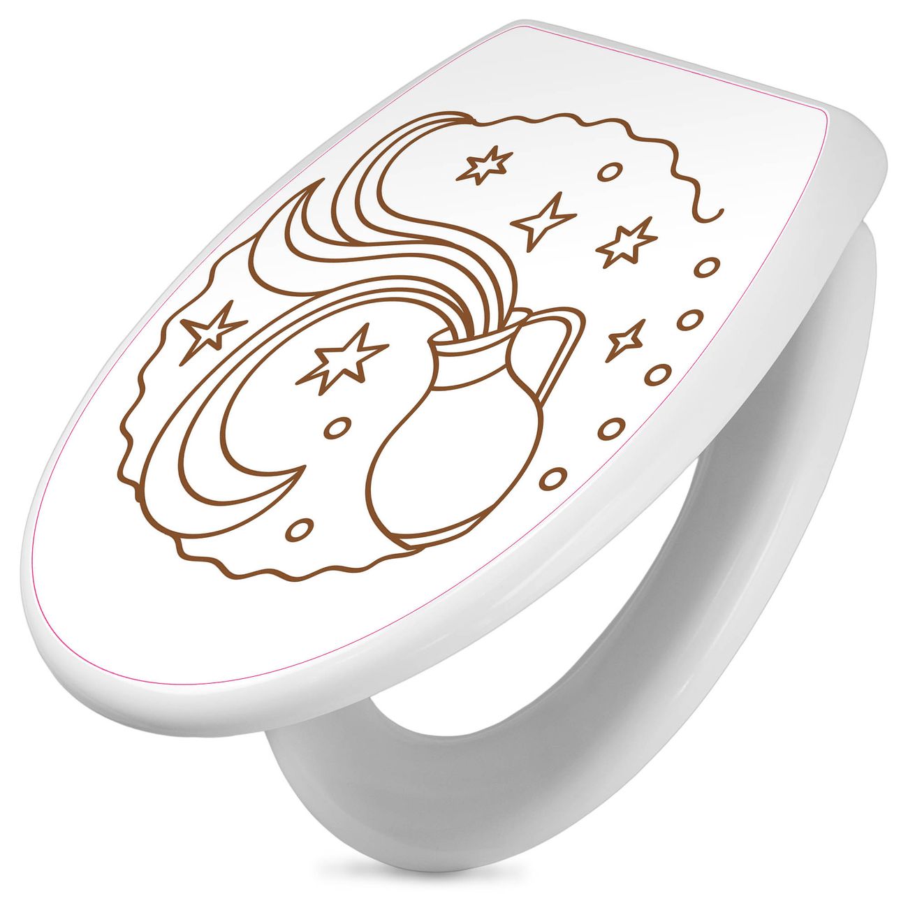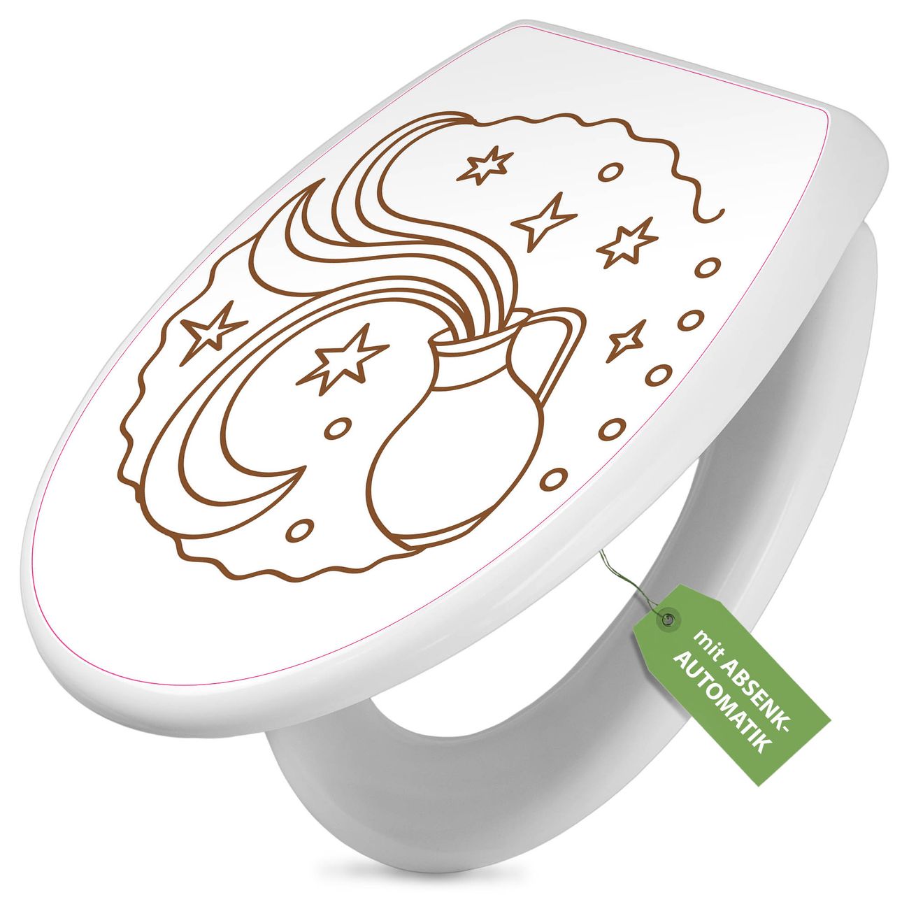 Toilettendeckel weiß mit Absenkautomatik Motiv Sternzeichen Wassermann