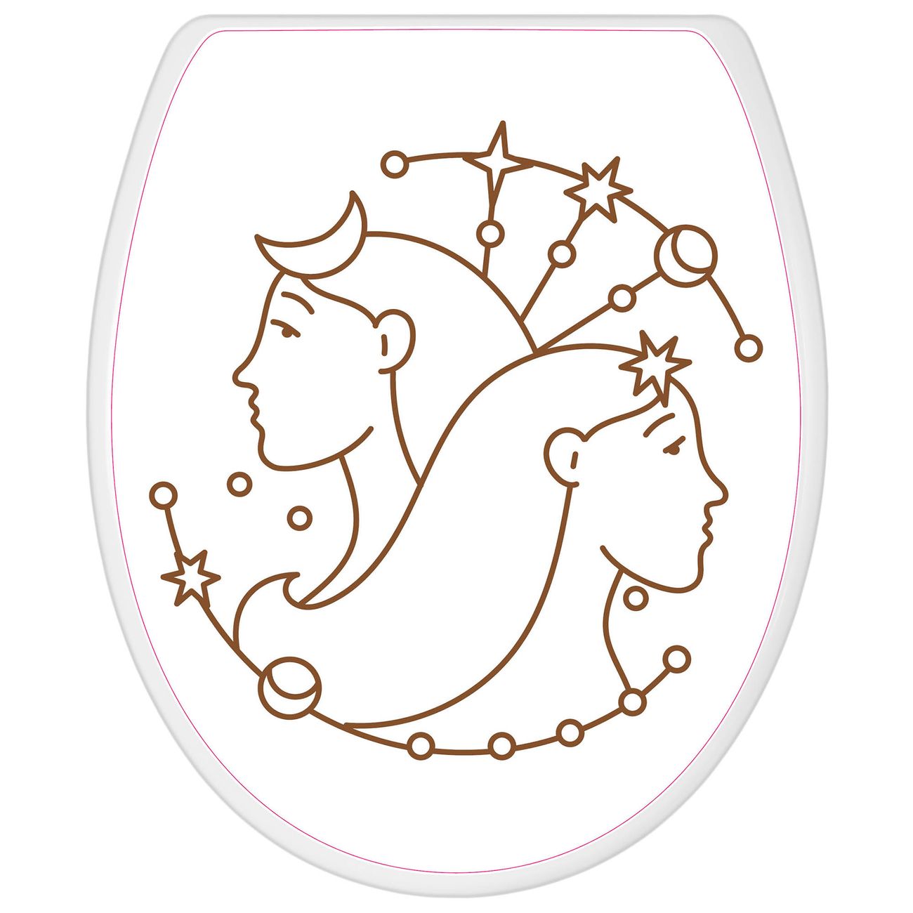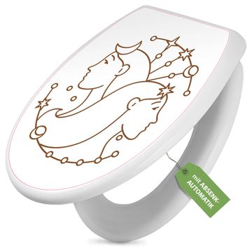Toilettendeckel weiß mit Absenkautomatik Motiv Sternzeichen Zwilling
