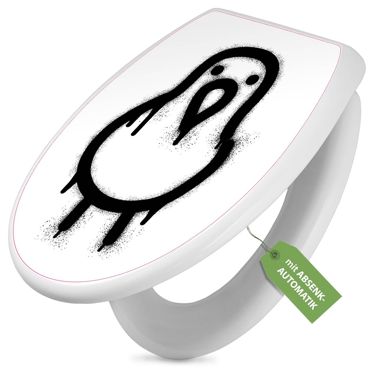 Toilettendeckel weiß mit Absenkautomatik Motiv Street Art Vogel Graffiti