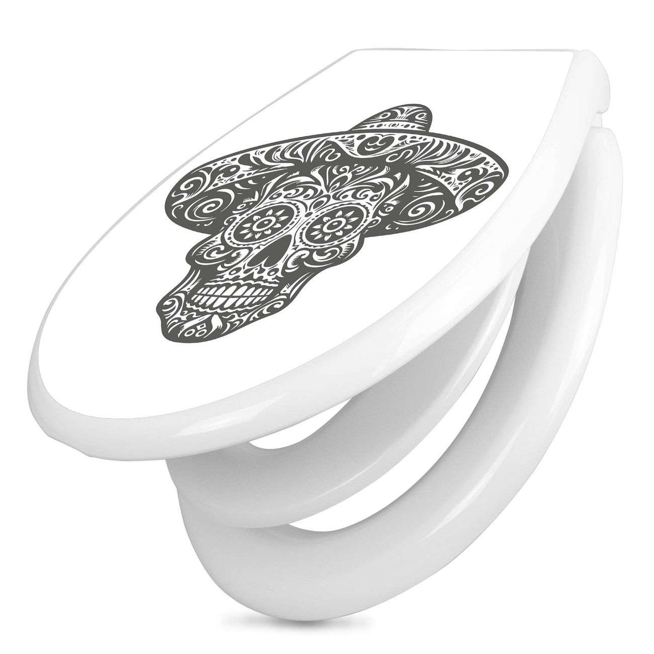Toilettendeckel weiß mit Absenkautomatik Motiv Sugar Skull Design