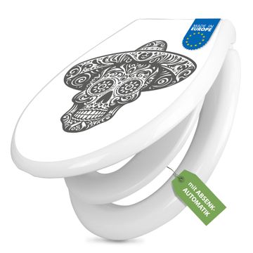 FUNKTION:Mit dem banjado Familien WC Sitz mit Absenkautomatik und dem Motiv Motiv Sugar Skull Design verbinden Sie Design mit Funktionalität. Sie erhalten den Toilettendeckel in bewährt guter Qualität mit Montagematerial passend auf alle Euro-WC-Becken. Die Gesamtgröße beträgt 37,1cm x 44,9cm x 5cm, die Grundfarbe ist weiß.</p> DESIGN:Der Klodeckel in weiß mit Motiv Motiv Sugar Skull Design hat eine ansprechende Optik, eine besondere Form und ist sehr stabil. Das Motiv besteht aus einer farbbrillianten Motivfolie, die durch ein Schutzlaminat zusätzlich vor Kratzern schützt. Der integrierte Kindersitz fügt sich harmonisch ein. DETAILS:Der Toilettensitz mit Soft Close besteht aus hochwertigem Polypropylen, ist geruchlos, ungiftig und kann mit handelsüblicher Seife gereinigt werden. Die Montage kann von von oben oder von unten erfolgen und ist kinderleicht. NUTZEN:Mit Hilfe der detaillierten Aufbauanleitung ermöglichen wir eine schnelle und unkomplizierte Montage. Die banjado Klobrille ist universell geeignet für alle Euro-WC-Schüsseln. Der Kindersitz kann unkompliziert entfernt werden. BANJADO:Ihr WC-Deckel wird in Sachsen in einer kleinen Manufaktur von Hand veredelt. Die Motivfolie ist lösungsmittelfrei und schutzlaminiert für einen langen Halt. Wir wünschen viel Freude bei der Auswahl eines schönen Motivs.