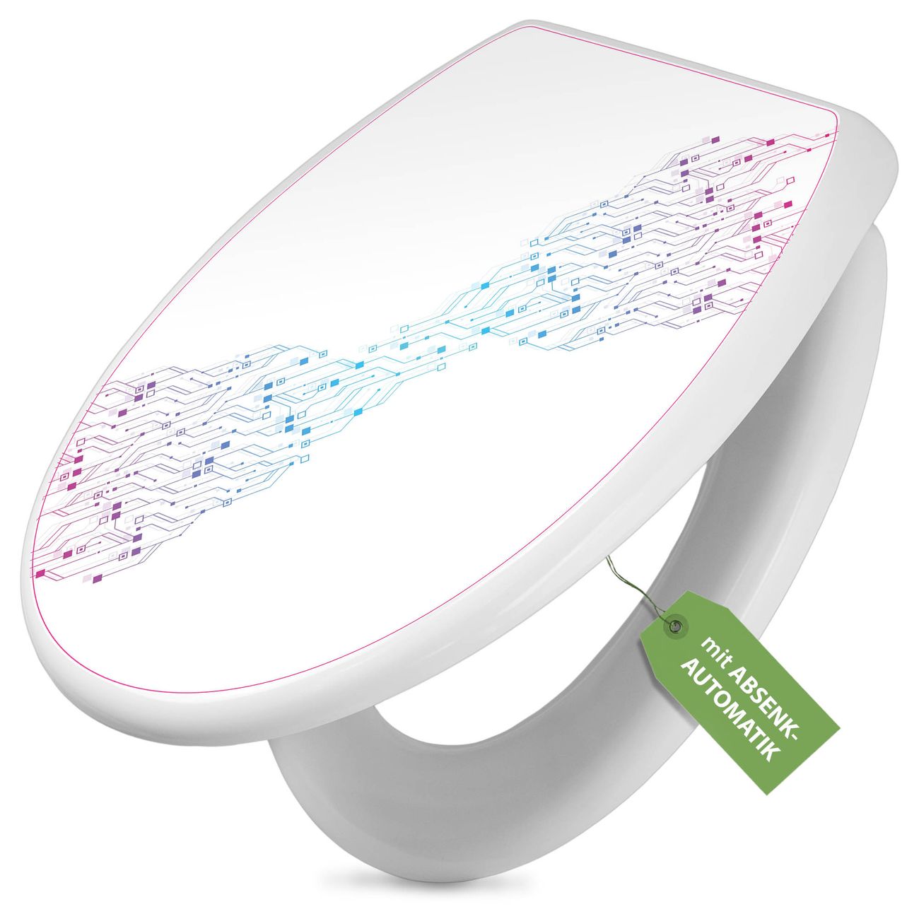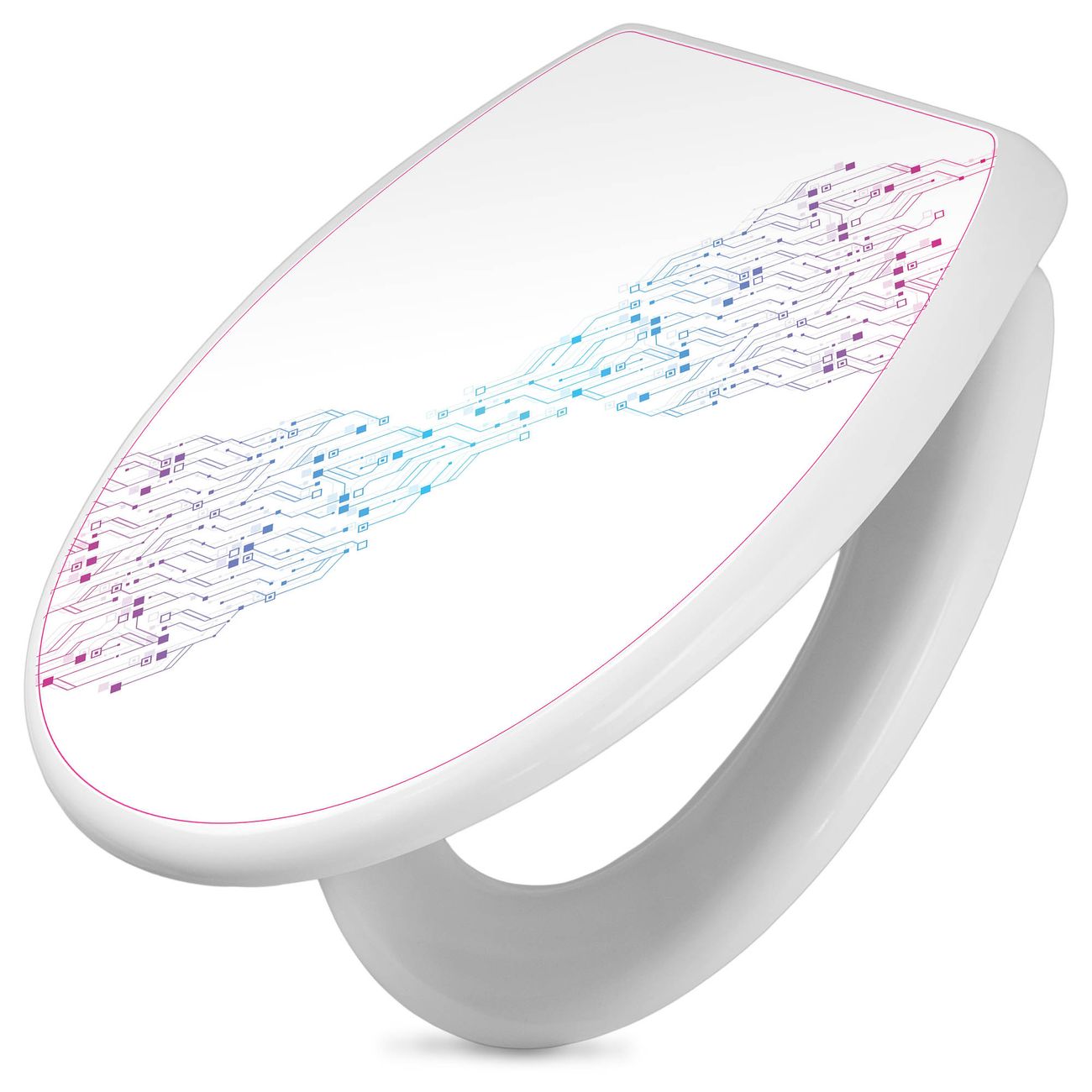 Toilettendeckel weiß mit Absenkautomatik Motiv Technologiemuster