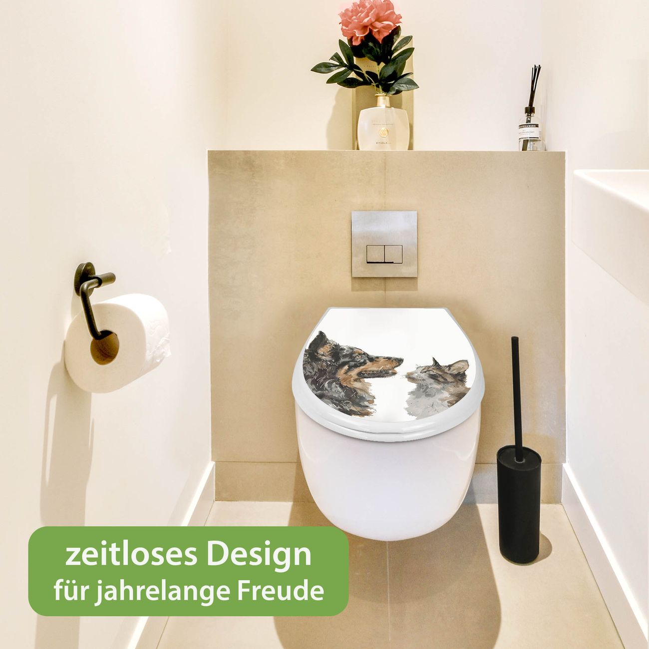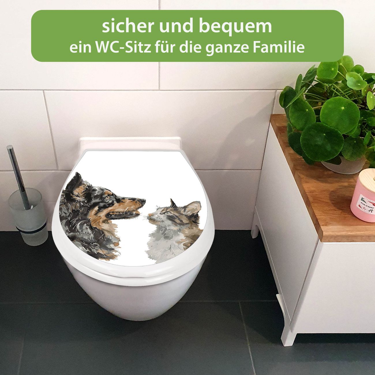 Toilettendeckel weiß mit Absenkautomatik Motiv Tierische Begegnung