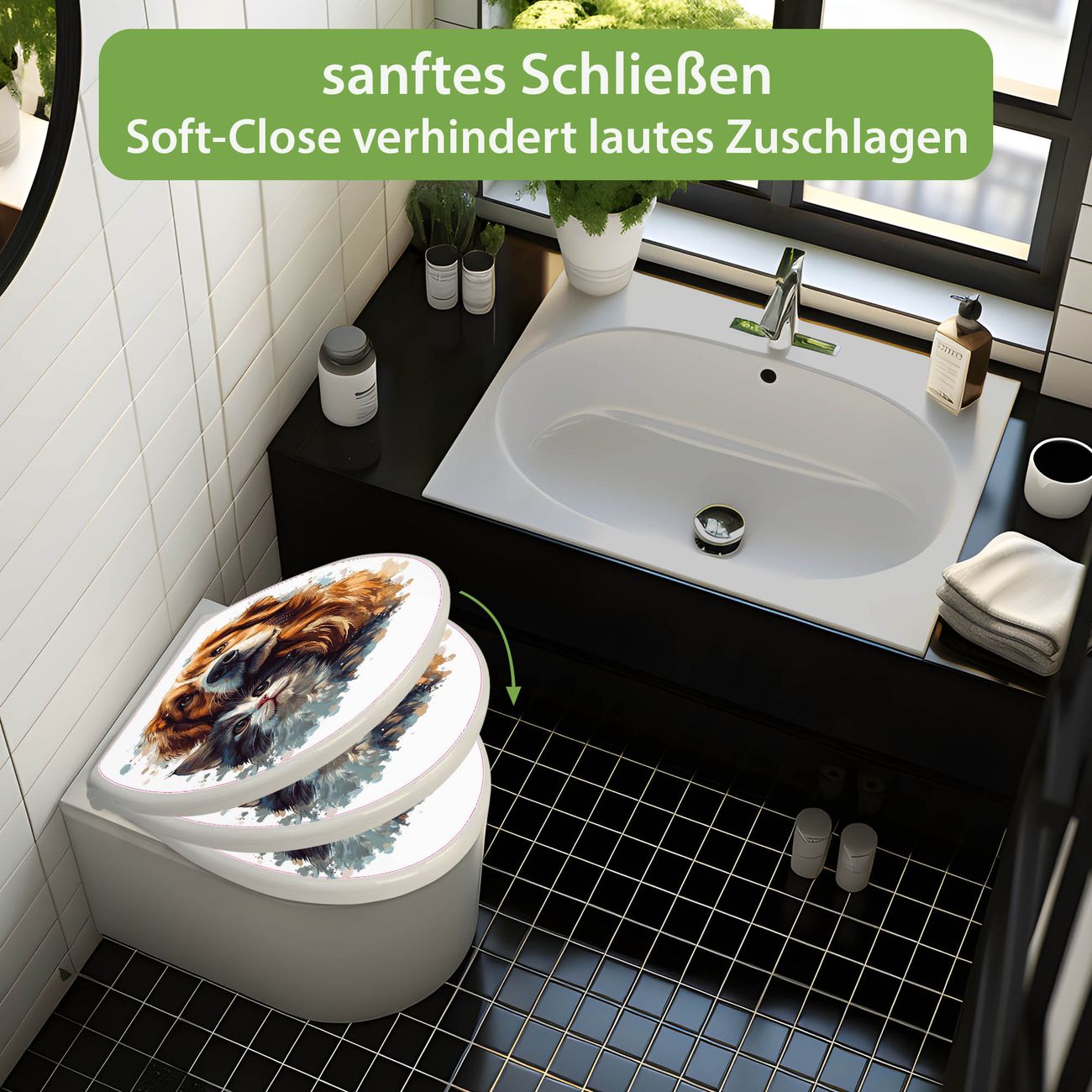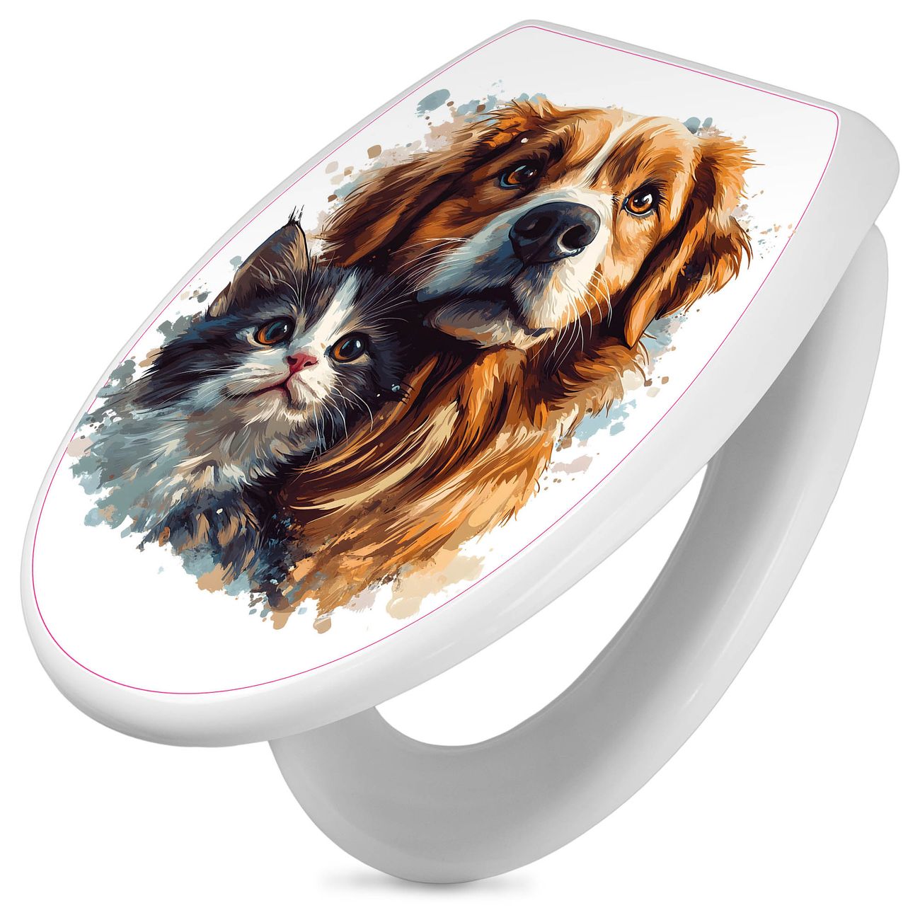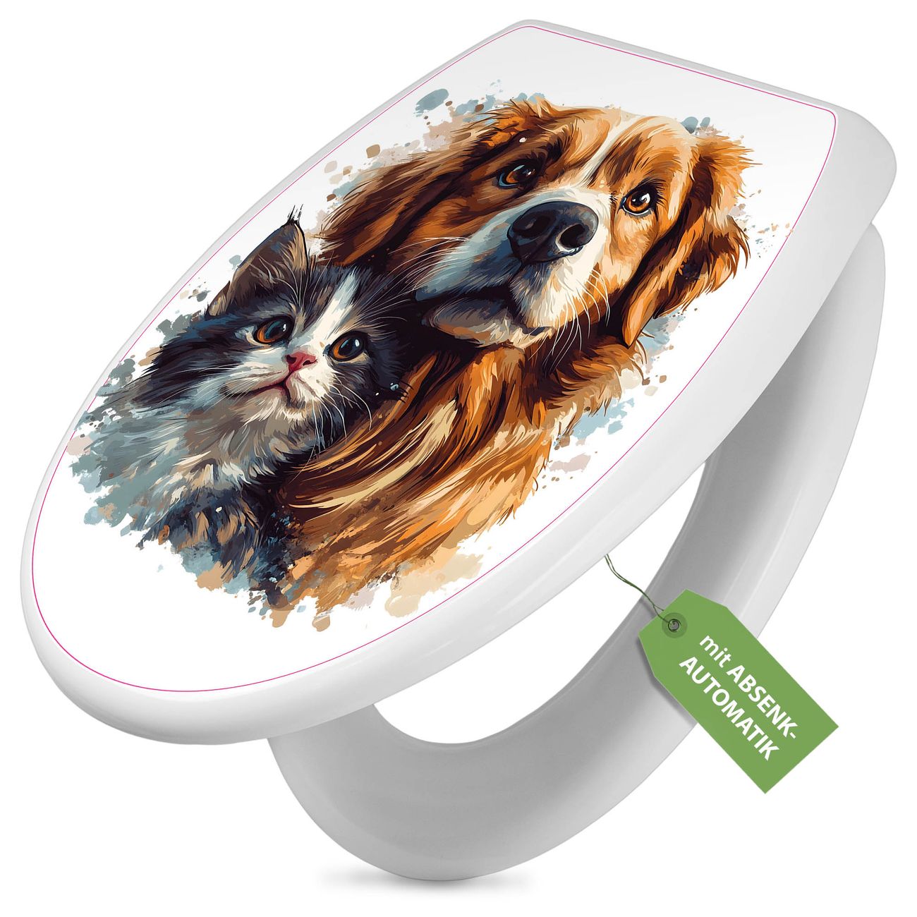 Toilettendeckel weiß mit Absenkautomatik Motiv Tierische Begleiter