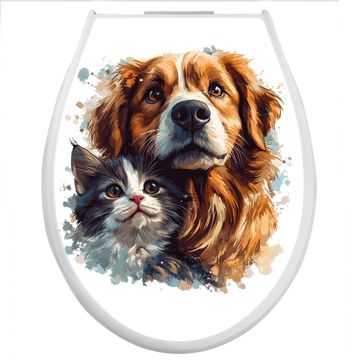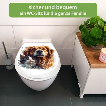 Toilettendeckel weiß mit Absenkautomatik Motiv Tierische Begleiter
