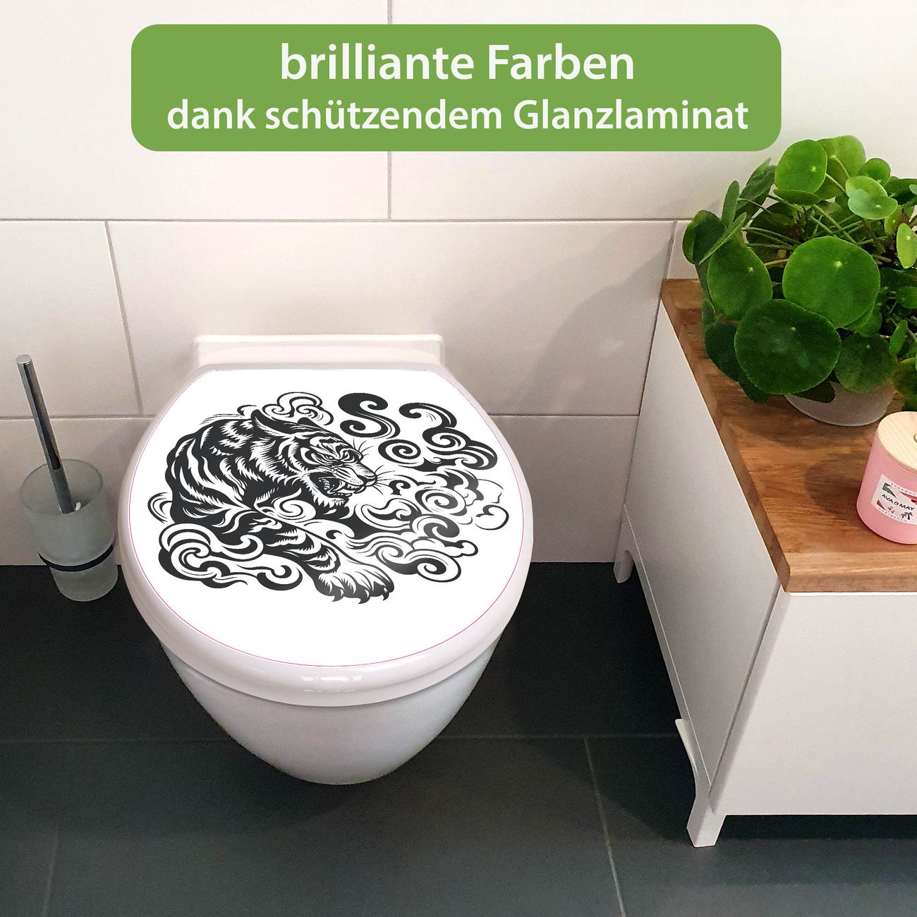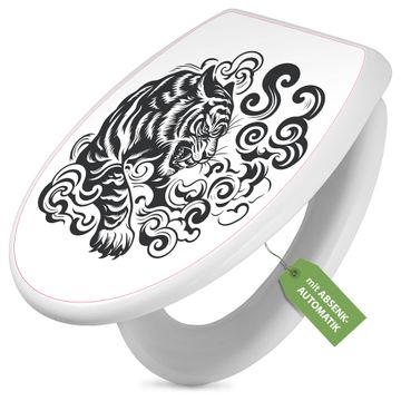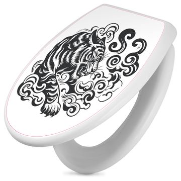 Toilettendeckel weiß mit Absenkautomatik Motiv Tiger Silhouette