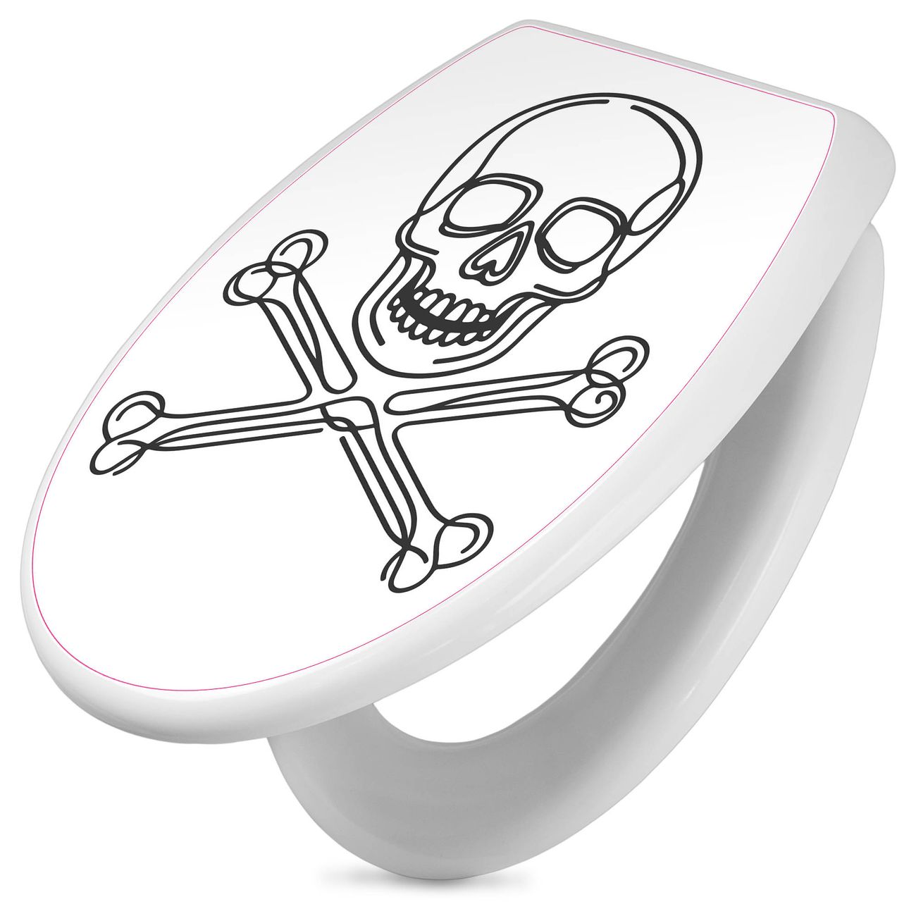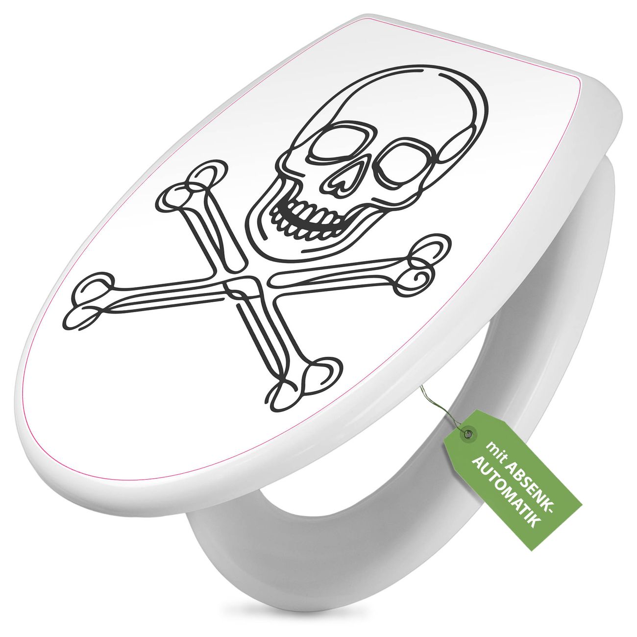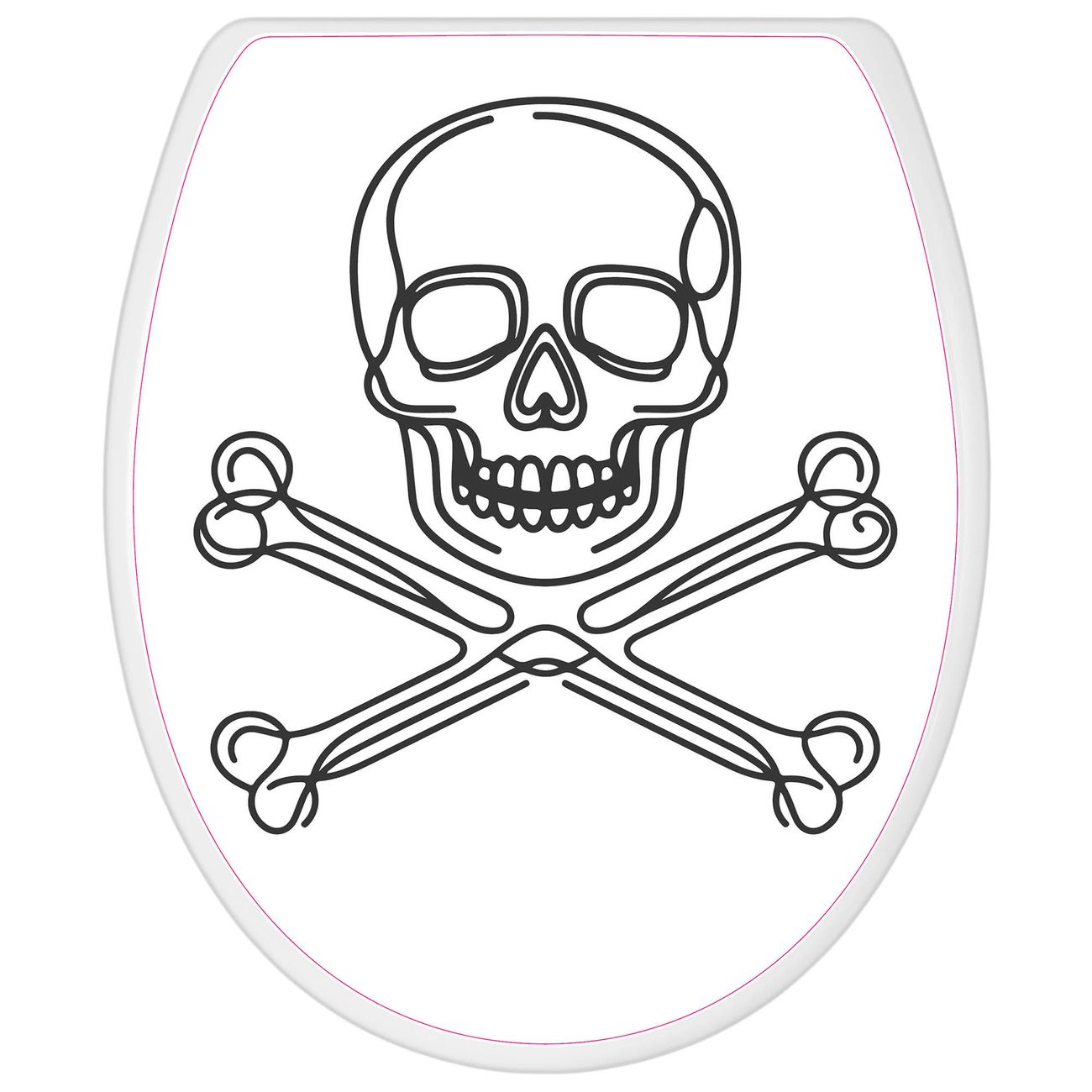 Toilettendeckel weiß mit Absenkautomatik Motiv Totenkopf und Knochen