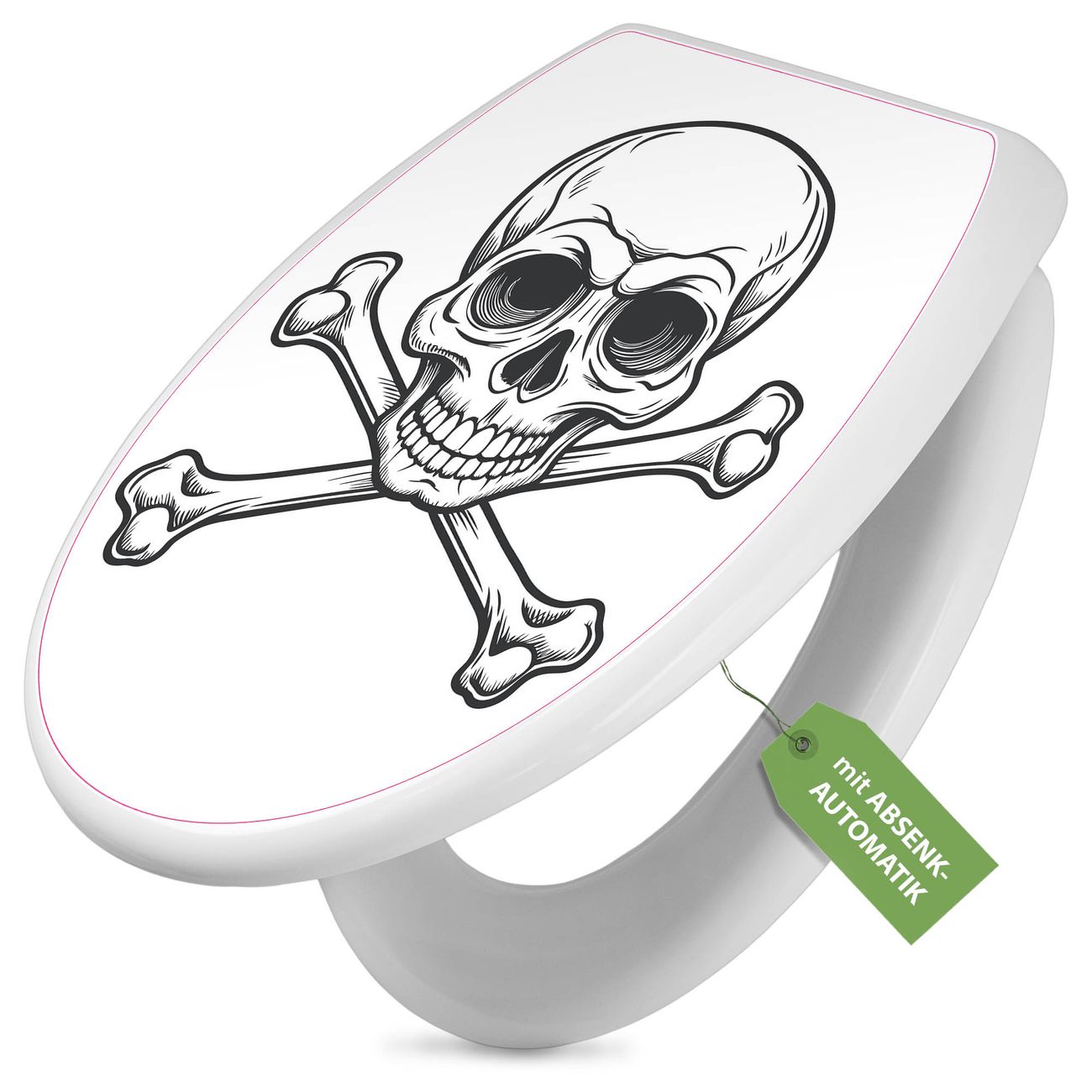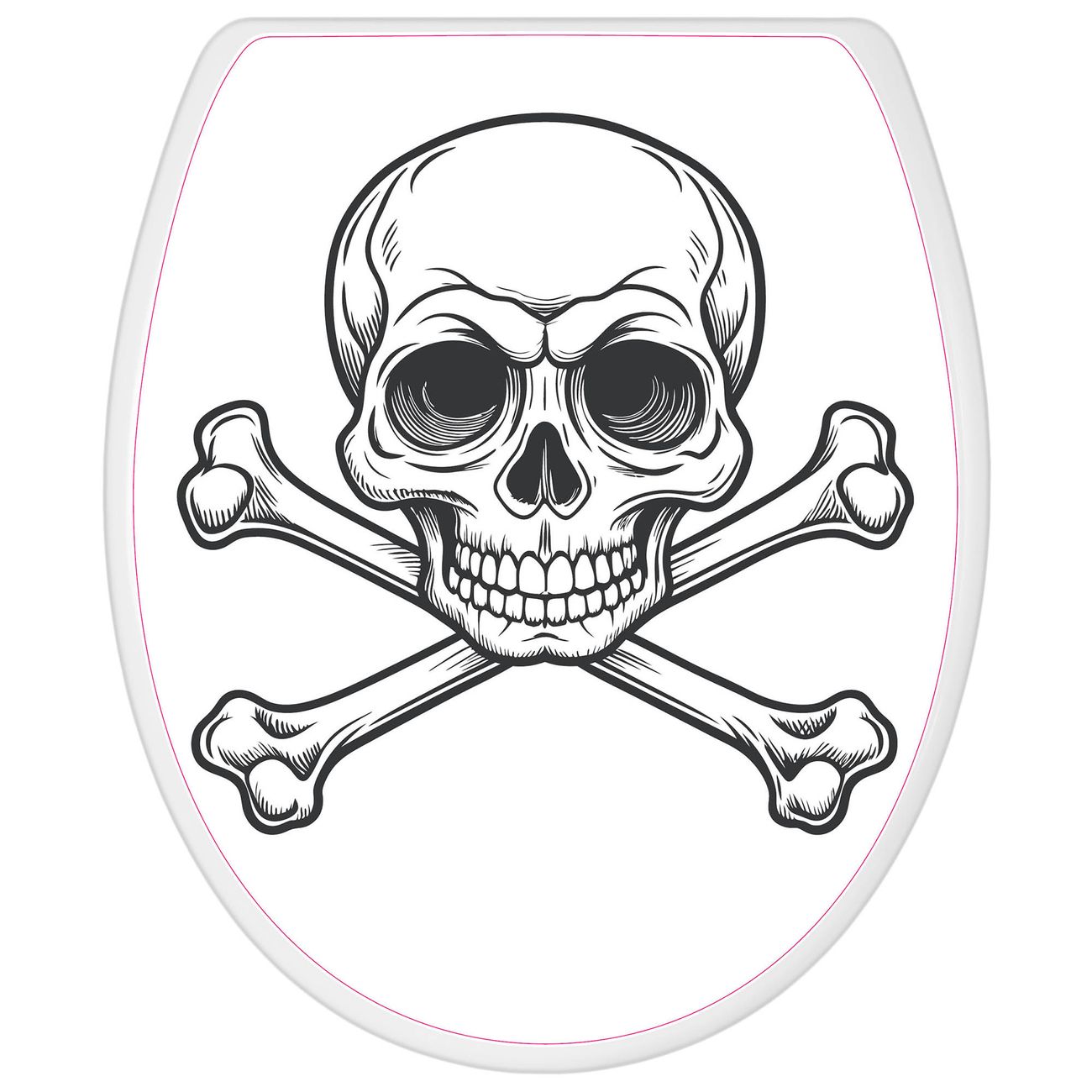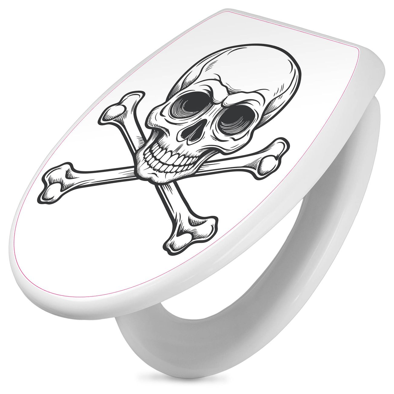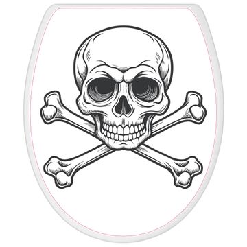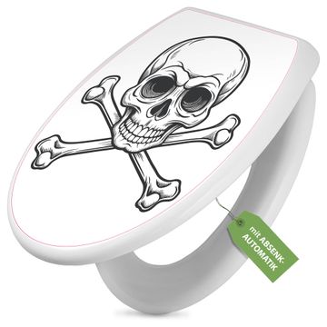 Toilettendeckel weiß mit Absenkautomatik Motiv Totenkopfsymbol