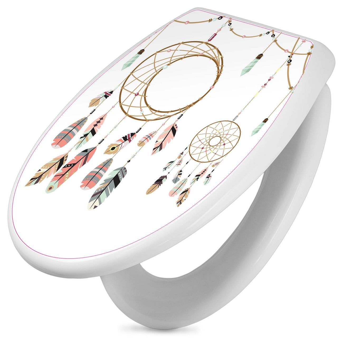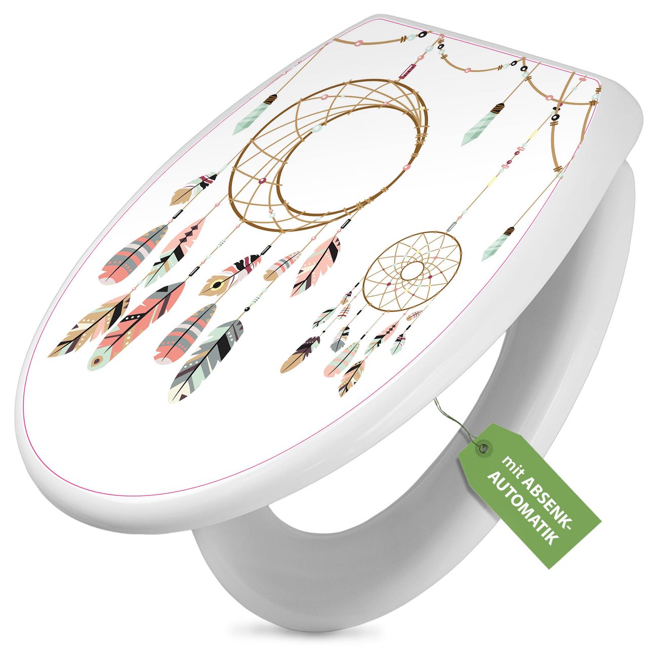 Toilettendeckel weiß mit Absenkautomatik Motiv Traumfänger Boho