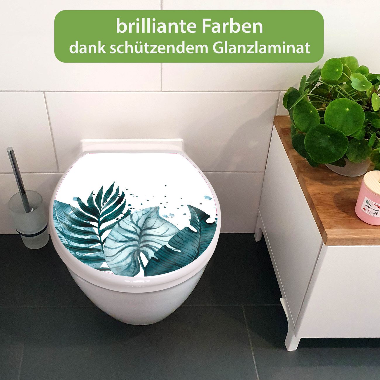 Toilettendeckel weiß mit Absenkautomatik Motiv Tropisches Aquarell