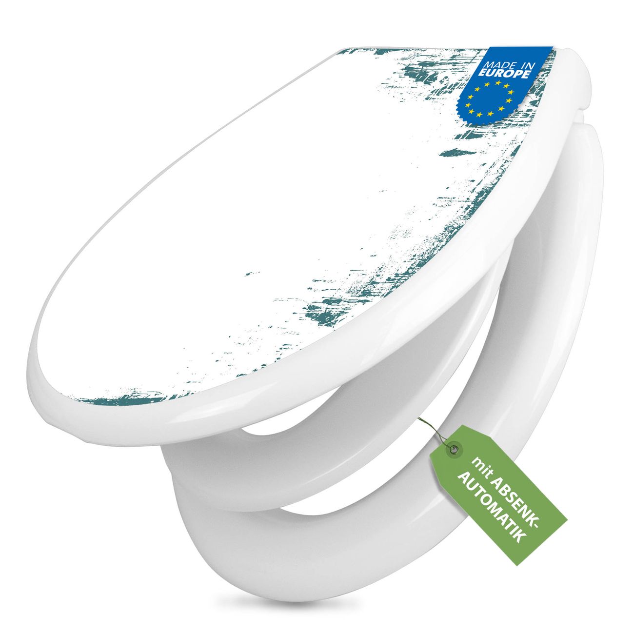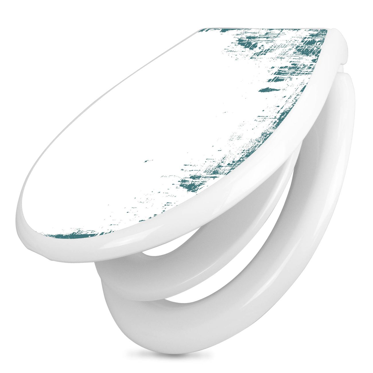 Toilettendeckel weiß mit Absenkautomatik Motiv Türkis-Weiße Rahmenstruktur