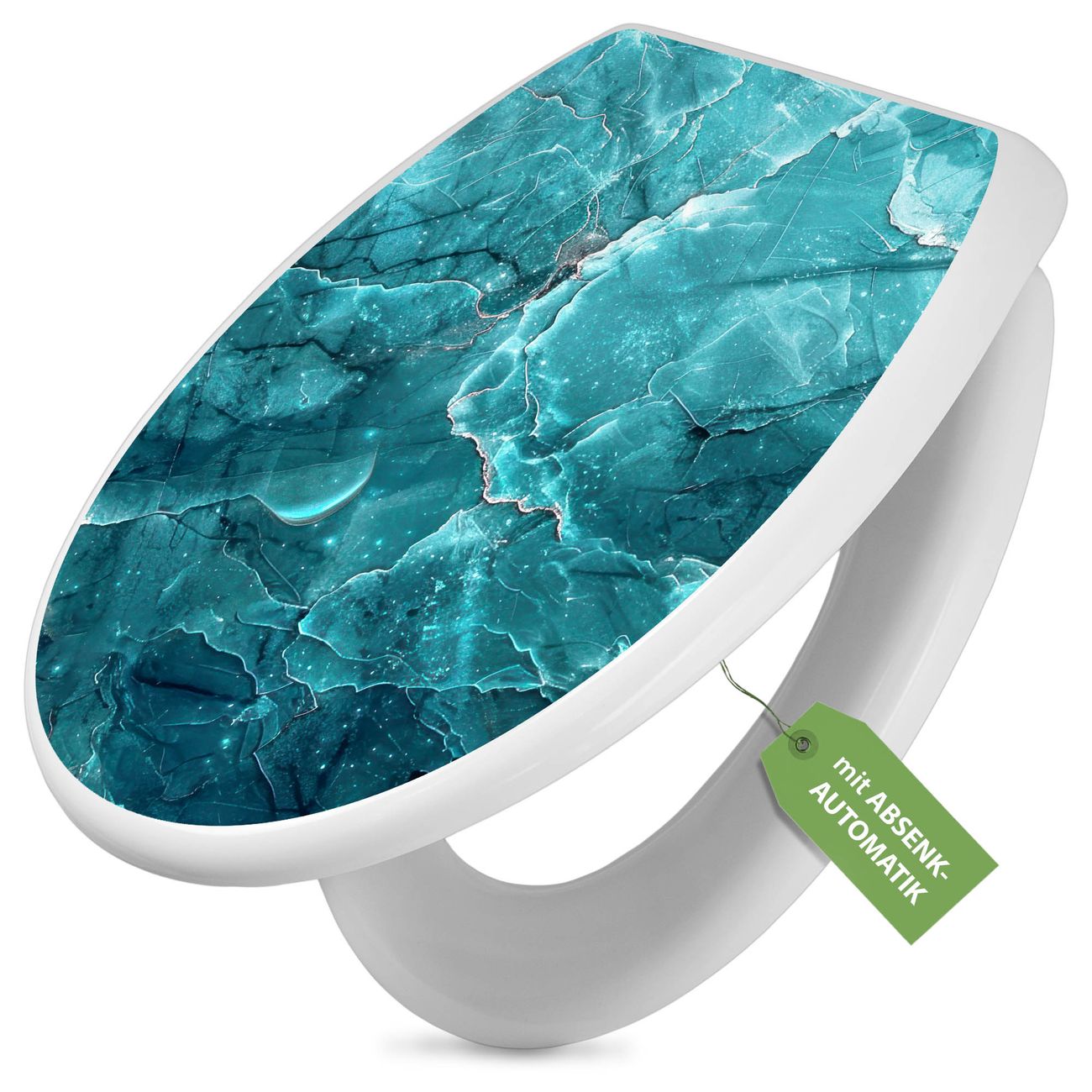 Toilettendeckel weiß mit Absenkautomatik Motiv Türkiser Marmor