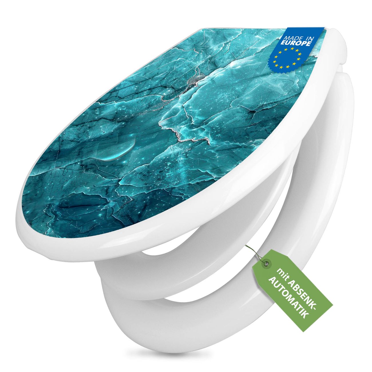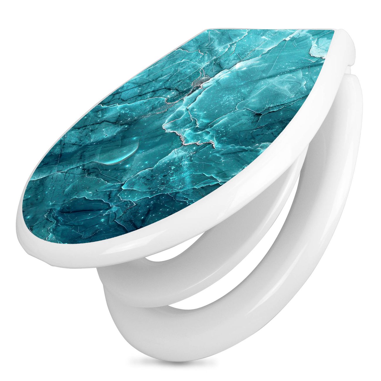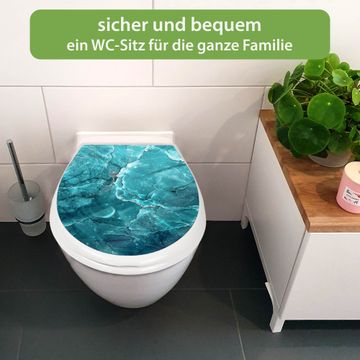 Toilettendeckel weiß mit Absenkautomatik Motiv Türkiser Marmor