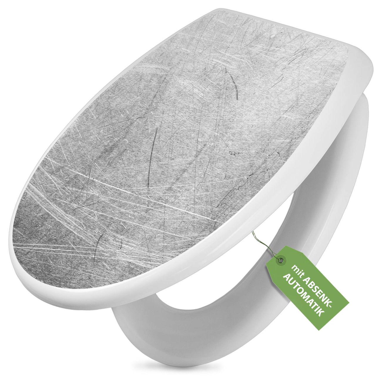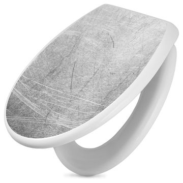 Toilettendeckel weiß mit Absenkautomatik Motiv Verkratztes Metall Grau