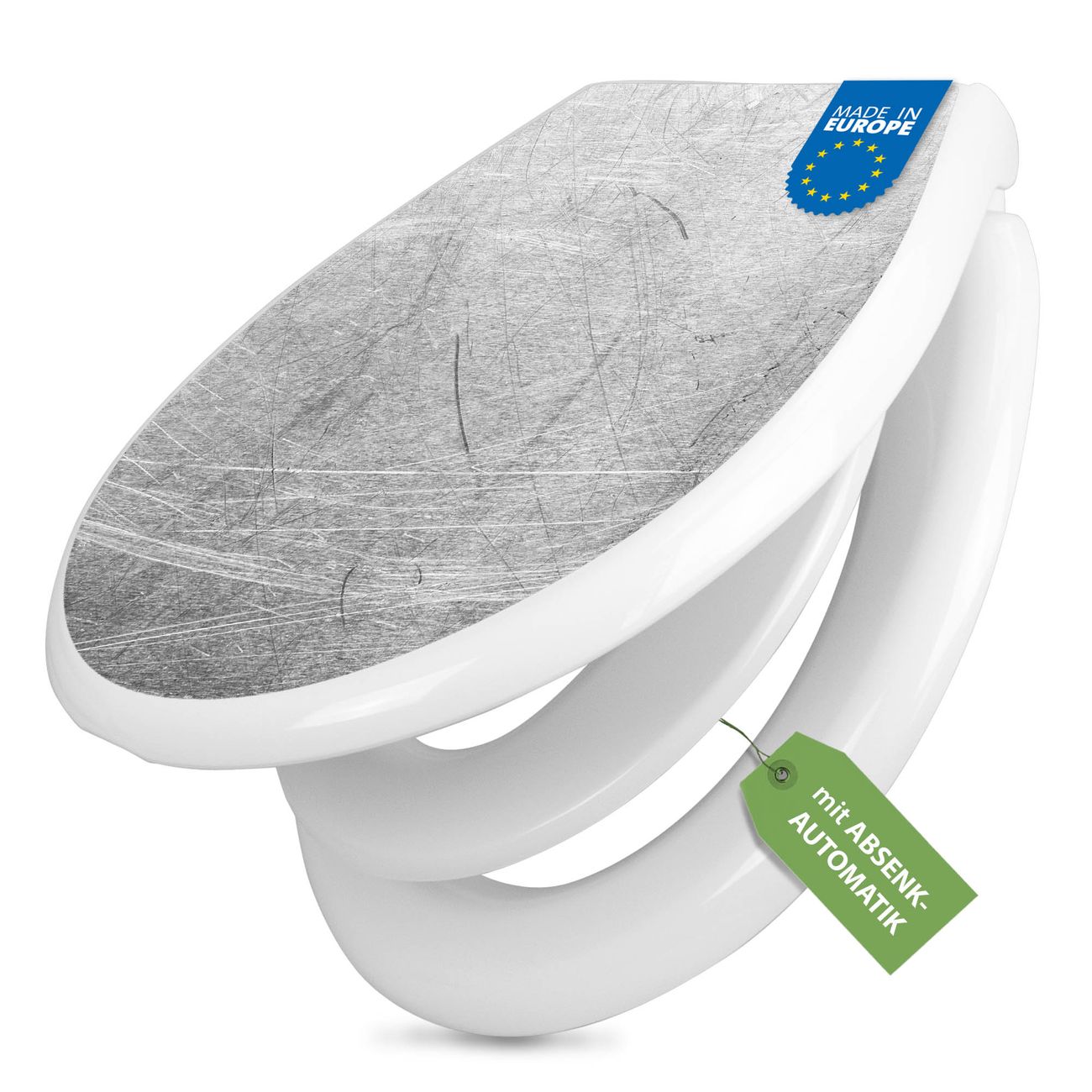 Toilettendeckel weiß mit Absenkautomatik Motiv Verkratztes Metall Grau