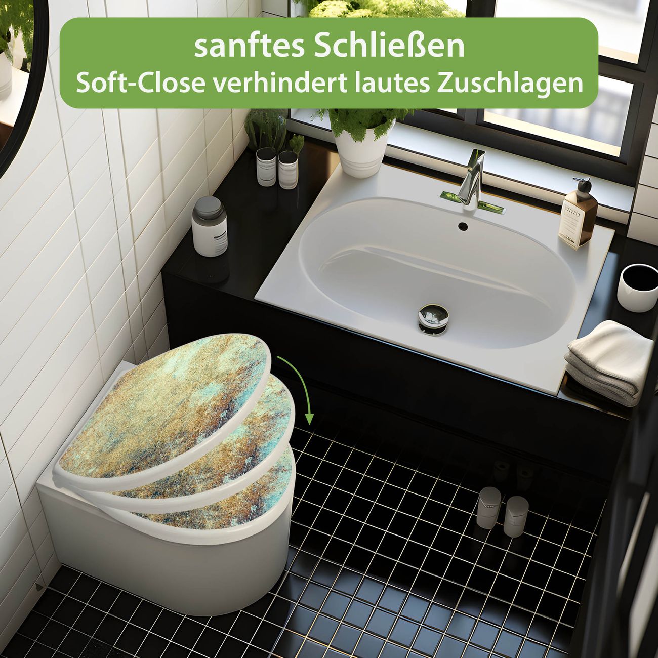 Toilettendeckel weiß mit Absenkautomatik Motiv Verwitterte Patina