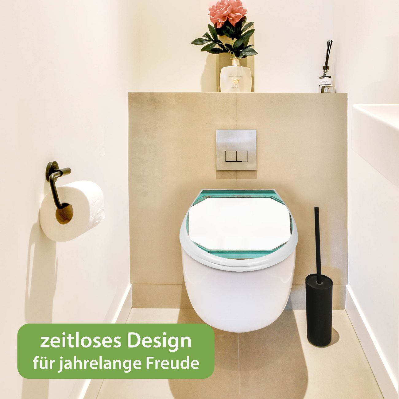 Toilettendeckel weiß mit Absenkautomatik Motiv Vintage Metallrahmen