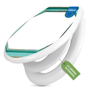 FUNKTION:Mit dem banjado Familien WC Sitz mit Absenkautomatik und dem Motiv Motiv Vintage Metallrahmen verbinden Sie Design mit Funktionalität. Sie erhalten den Toilettendeckel in bewährt guter Qualität mit Montagematerial passend auf alle Euro-WC-Becken. Die Gesamtgröße beträgt 37,1cm x 44,9cm x 5cm, die Grundfarbe ist weiß.</p> DESIGN:Der Klodeckel in weiß mit Motiv Motiv Vintage Metallrahmen hat eine ansprechende Optik, eine besondere Form und ist sehr stabil. Das Motiv besteht aus einer farbbrillianten Motivfolie, die durch ein Schutzlaminat zusätzlich vor Kratzern schützt. Der integrierte Kindersitz fügt sich harmonisch ein. DETAILS:Der Toilettensitz mit Soft Close besteht aus hochwertigem Polypropylen, ist geruchlos, ungiftig und kann mit handelsüblicher Seife gereinigt werden. Die Montage kann von von oben oder von unten erfolgen und ist kinderleicht. NUTZEN:Mit Hilfe der detaillierten Aufbauanleitung ermöglichen wir eine schnelle und unkomplizierte Montage. Die banjado Klobrille ist universell geeignet für alle Euro-WC-Schüsseln. Der Kindersitz kann unkompliziert entfernt werden. BANJADO:Ihr WC-Deckel wird in Sachsen in einer kleinen Manufaktur von Hand veredelt. Die Motivfolie ist lösungsmittelfrei und schutzlaminiert für einen langen Halt. Wir wünschen viel Freude bei der Auswahl eines schönen Motivs.